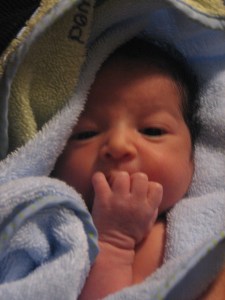 In what I am sure is going to be a trend over the next 50 years, we had another significant development this morning.  During our morning change, Nolin’s umbilical cord fell off.  I have been told that you are supposed to plant it with a tree, so I think that when Grandpa Don comes to visit in a few weeks that is what we are going to do (my last venture at planting trees not so successful since all 6 died…awesome).