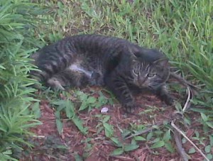 Apparently, I failed to think about the fact that adopting a male stray cat could lead to problems. We think Toonces may be a father in the near future. That’s right apparently Toonces’ night time activities were a little more active than we imagined. Thus enters Mountain Cat…