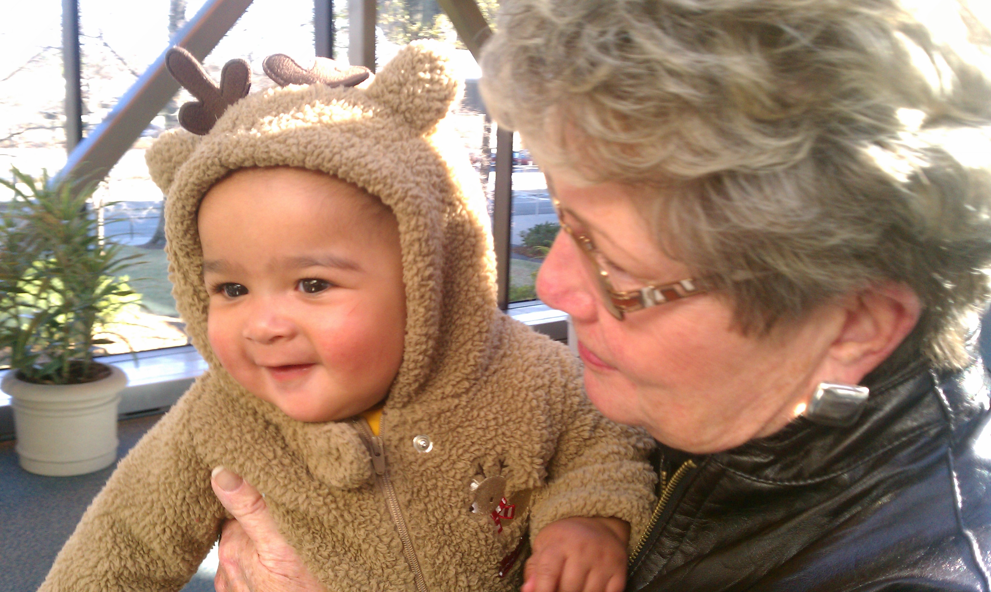 We made it once again with flying colors and Nolin greeted my mom at the airport in his Reindeer outfit(Nolin’s version of Ralphie’s bunny pajamas)…yeah, I am pretty certain when he gets older he’ll have something to say about that. I know it is a bit ridiculous, but is one of the few really warm and easy outfits we have…plus it is kind of funny to see people’s reactions. I was so excited for my parents to see how much he has grown up since October…I mean the kid is crawling now. The moment we landed, my parents were in full Grandparent mode and didn’t want to leave his side for a second. They watched him crawl, they watched him bounce, they listened to him laugh and squeal and it was all just exciting for them.
