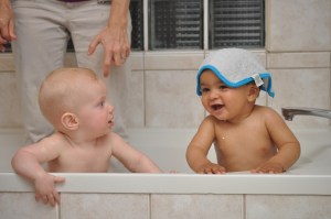 Thursday by all accounts was a great day since Nolin had no idea what he was in store for. Nolin and Carter visited some of Jenn’s family and had a nice afternoon. When they got home, they took a joint bath in the big tub, which quickly became a photo shoot. Then Carter went off to bed, and we got Nolin ready to wind down for the night.