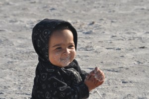 If you have ever seen the movie A Christmas Story, it was very similar to the scene where Randy is coerced into eating meatloaf when his mom says “Show me how a piggy eats“. Nolin would face plant, eat sand, come up with sand from ear to ear, laugh and do it again. OK, this is really strange. I know you are not supposed to laugh at these things but it was hilarious.