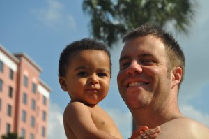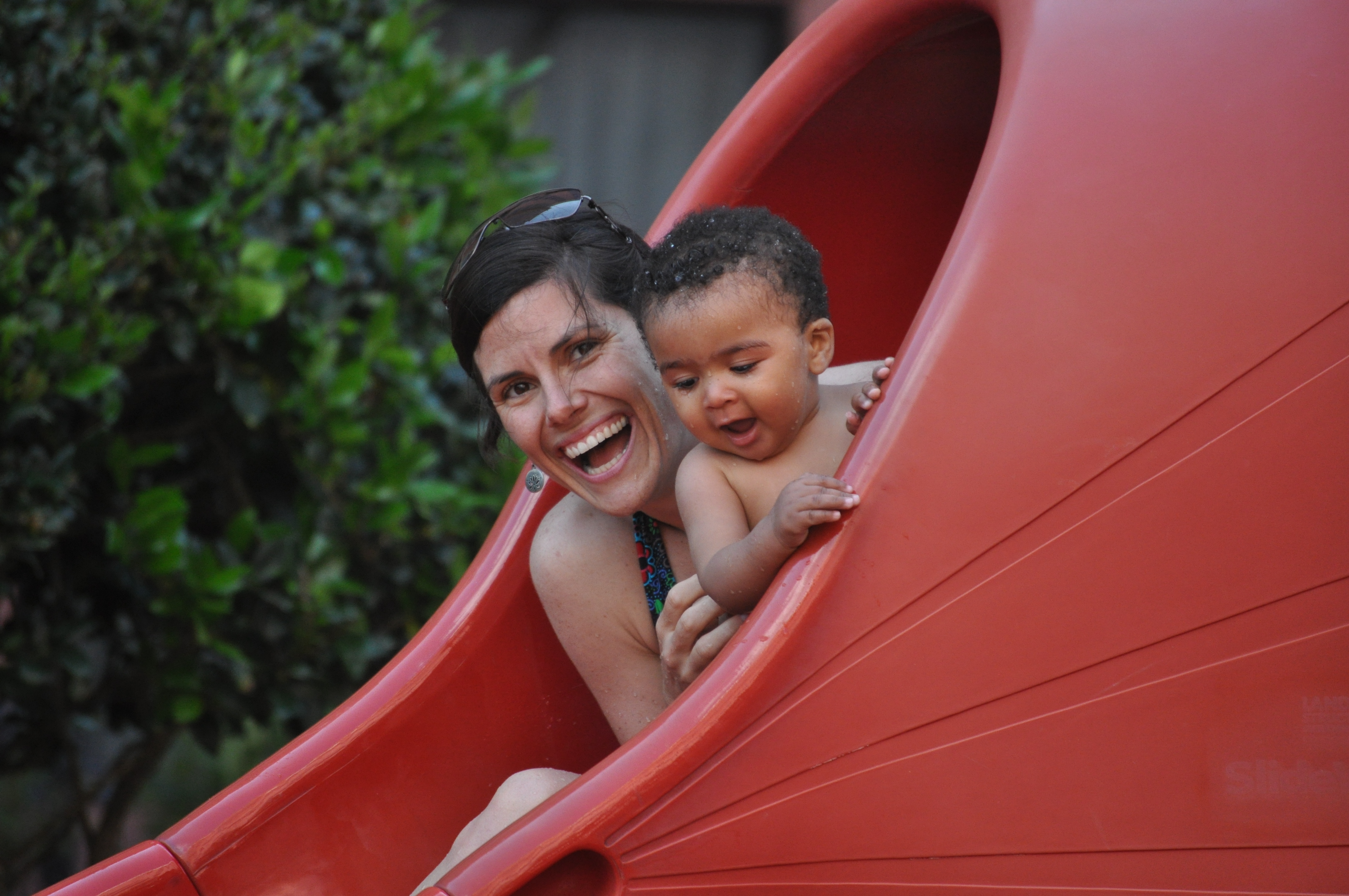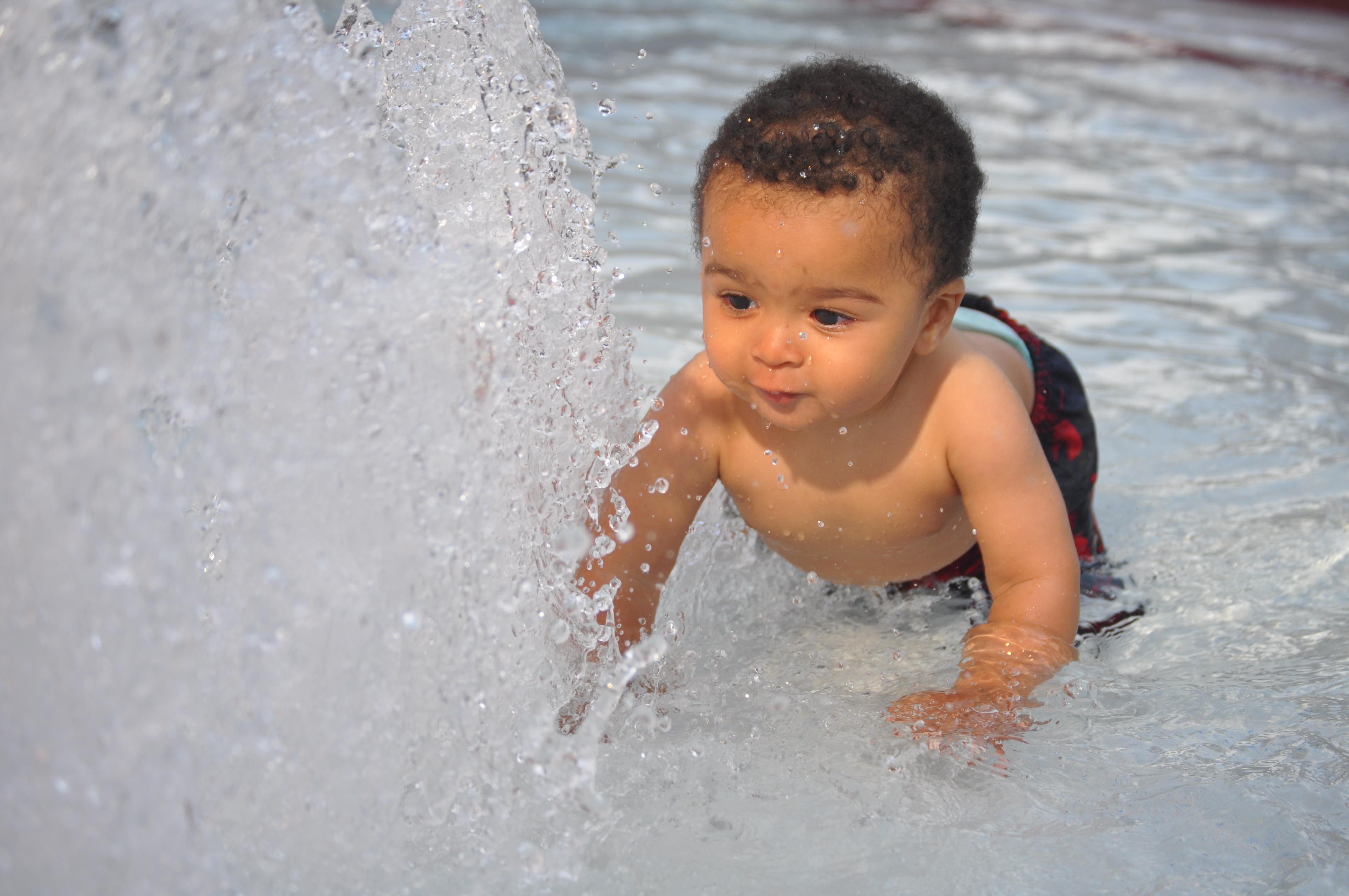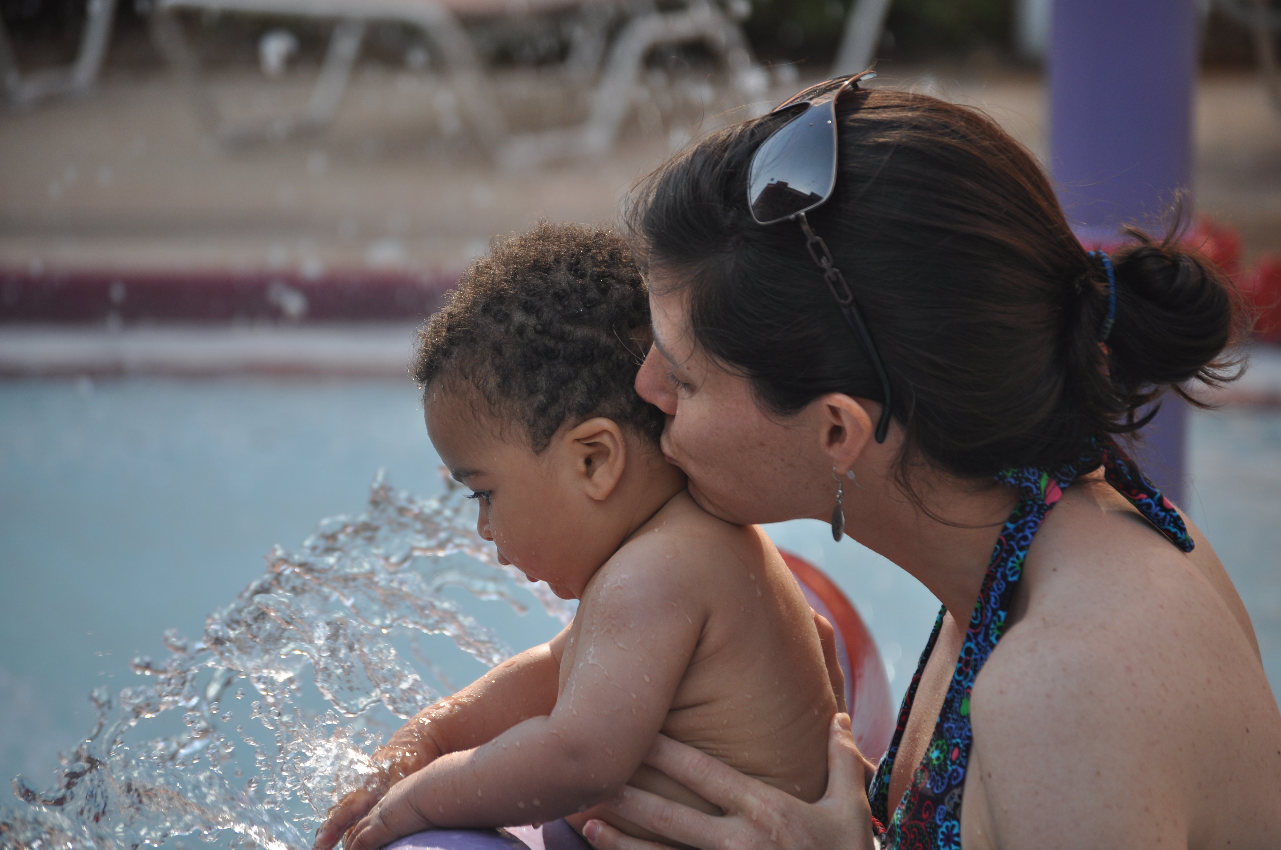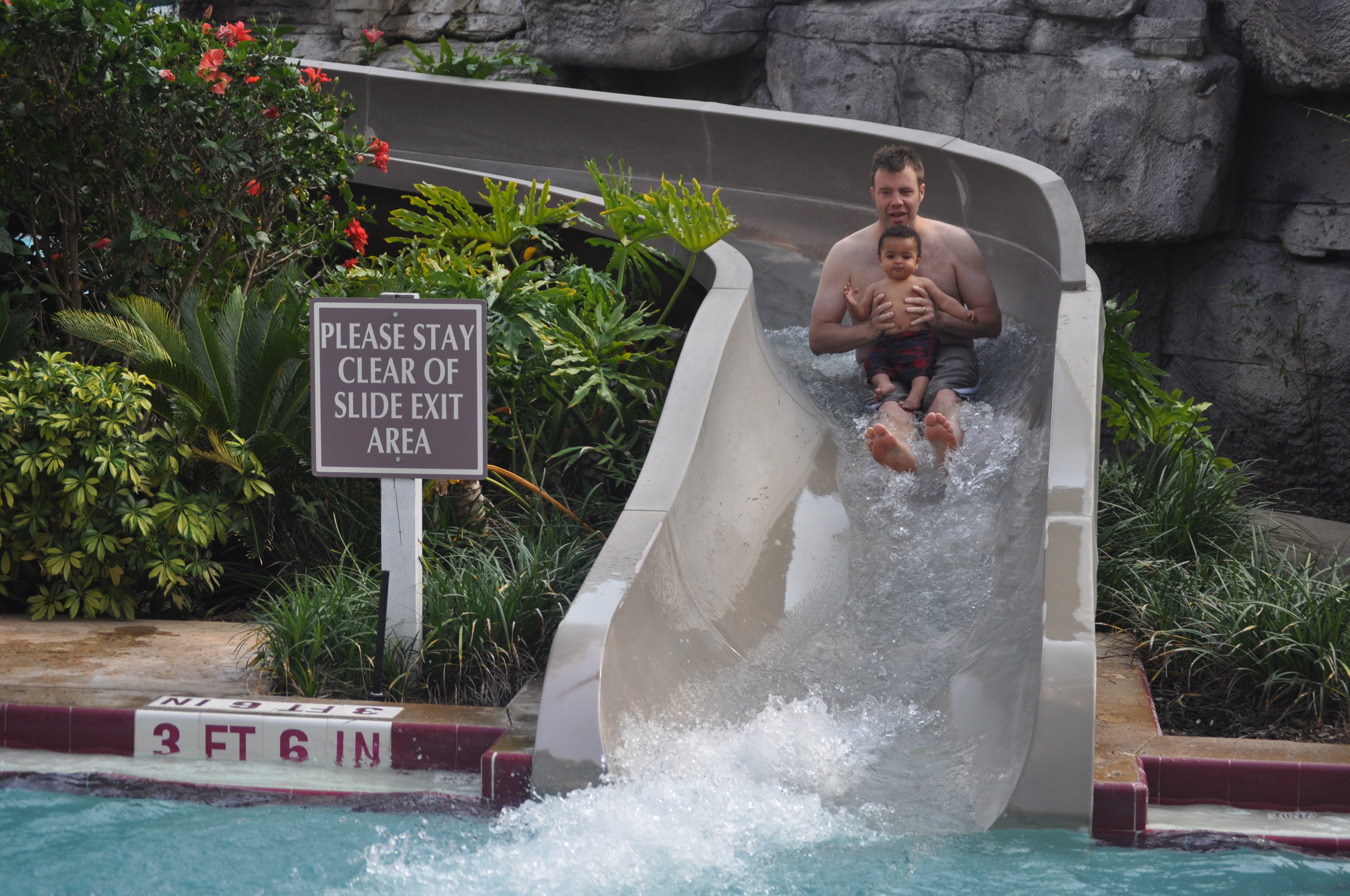 On Sunday Jenn, Nolin & Teresa joined me and we spent the day at the pool , headed out to dinner and then called it a night. The pool had a huge waterfall & a slide and Nolin was a fan. Well actually I think I was more of a fan of the slide, but since I was easily 25 years older than anyone else who was riding it, Nolin was my cover. They even had a kiddie pool equipped with water fountains to which Nolin showed no fear as he went exploring all of them. Yep, our son is all boy.
