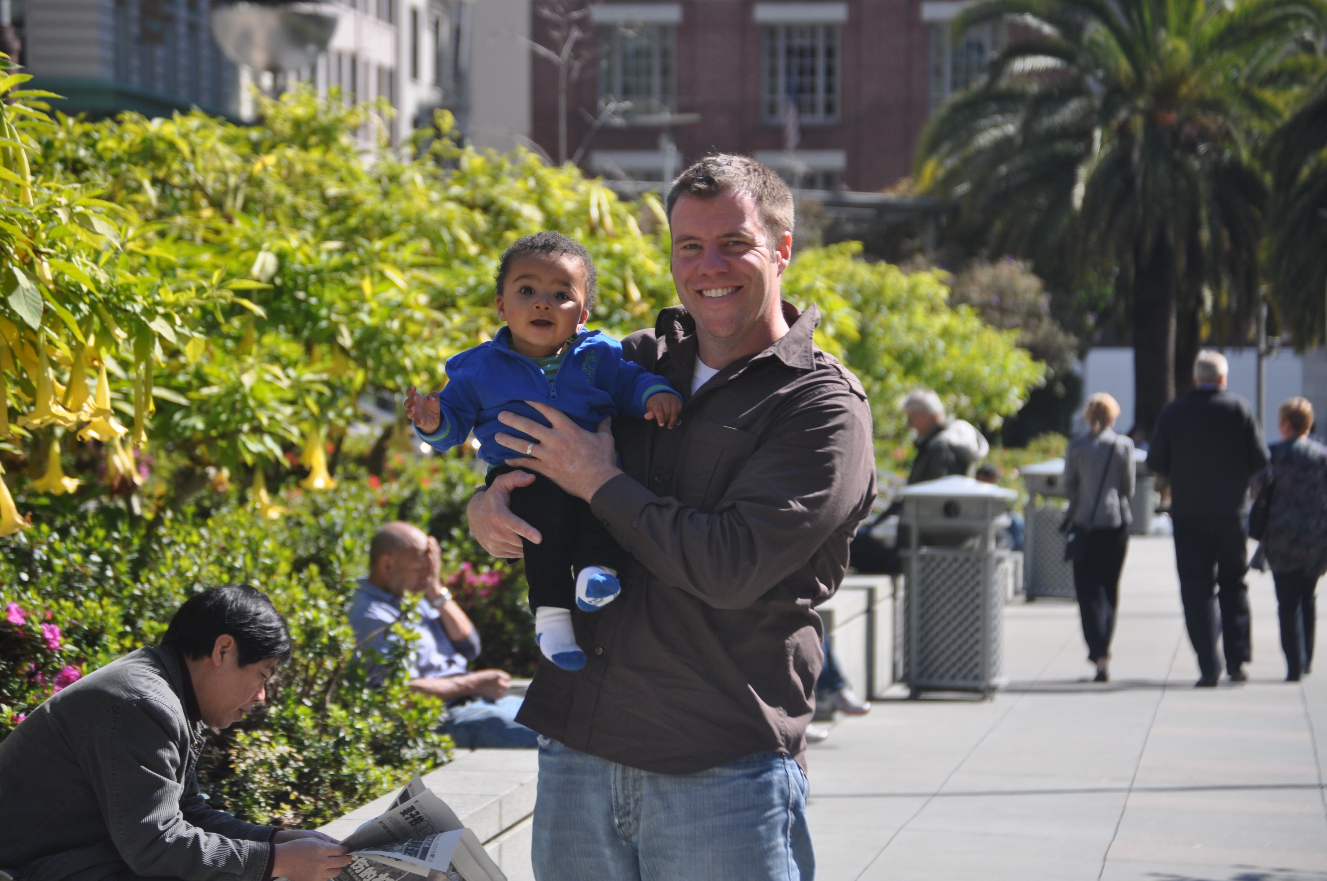 Its a funny thing that you can go to the other side of the country and have a chance to see so many people that you know from all over. It started when we arrived on Saturday. Jenn went to class, Nolin and I meandered the Union Square area walking through a Yemen protest group, a few homeless people screaming at the sidewalk and a park in the middle of the city. Apparently, I strongly believe in giving Nolin a fully cultured experience. I will say that I think that Nolin will be a city kid when he grows up. There was so much going on so Nolin’s curiosity was on overload. He loved just being outside and watching the city life pass us by.