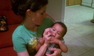 I picked Nolin up, held his head and kissed his eye telling him it would be alright and that is when it happened…a parent’s worst nightmare. No we didn’t realize that we were going to have to rush him to the hospital or even get any blood…it was much worse! As I am holding Nolin, he turned his head, looks at Jenn and puts his arms out for her. Stab me in the heart. To make matters worse, he stopped crying within about 10 seconds.