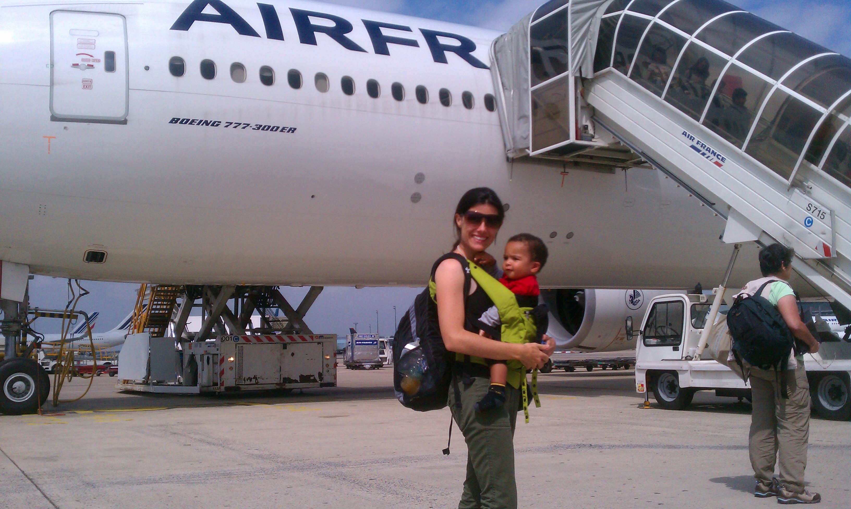 With half-opened eyes, he looked at me and summed up the moment precisely with one clearly stated word…”f@&$“. At this moment we both realized that there would be no more sleep and the next several hours would be filled with singing Old McDonald Had A Farm and reading the 1,2,3 book.  Sleep deprived I started trying to walk the plane with Nolin hoping he would go to sleep.  Annoyed with me, he finally let out a quick (but loud) cry and from the back of the plane a lone figure jumped up…I rushed back over to Jenn, handed Nolin off and said have fun.