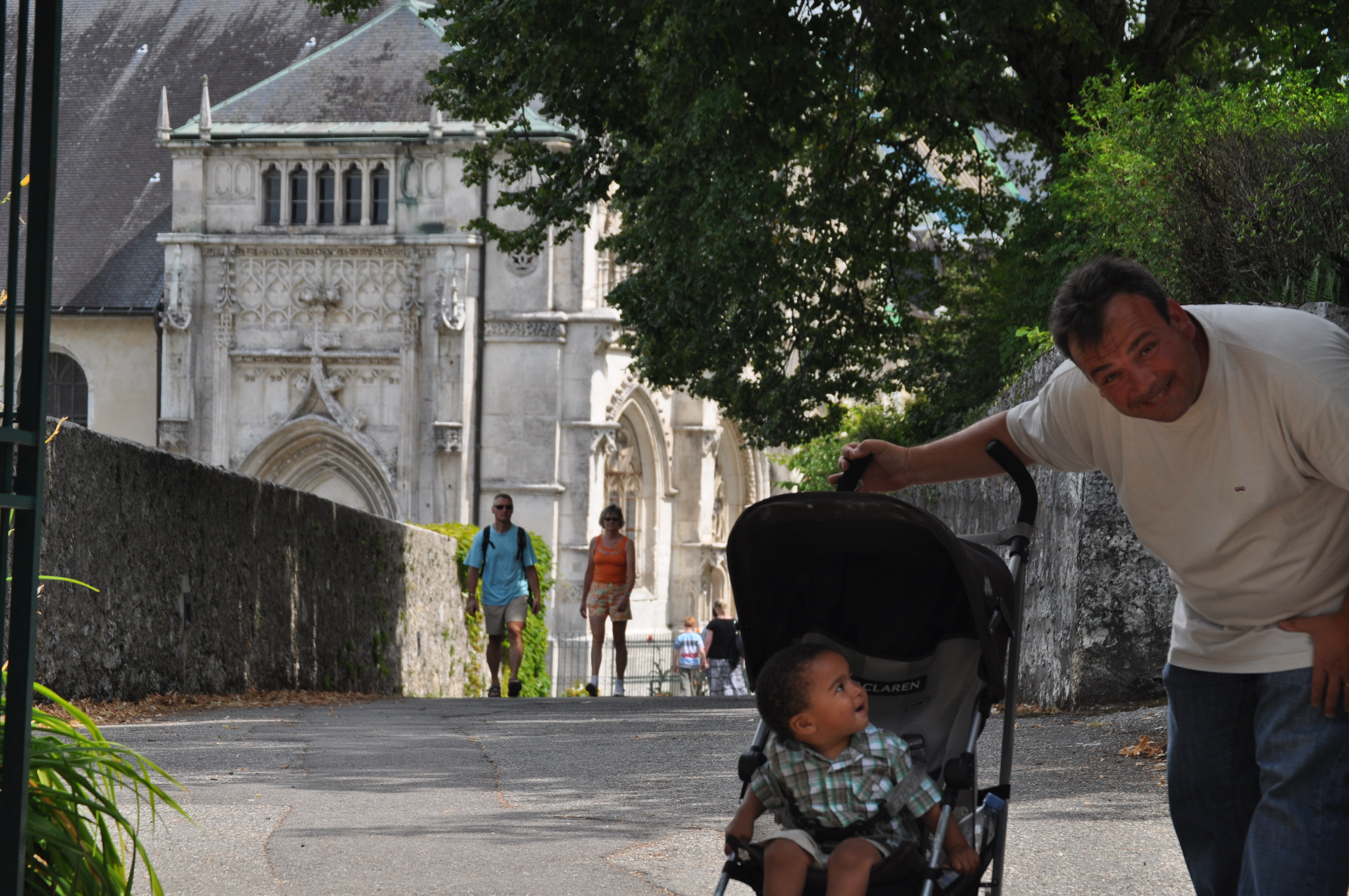 The next day we took a boat ride to Hautecombe Abbey on Lac du Bourget (the largest lake in France) and the grounds were stunning. As we were walking around Oliver took Nolin and began pushing him around just like a proud grandfather. Which turned out to be pretty funny because he ran into a friend who Axelle had not seen since she left for America and since Nolin was just about the right age…well, he definitely gave her and Oliver a few looks trying to figure out exactly what had happened.