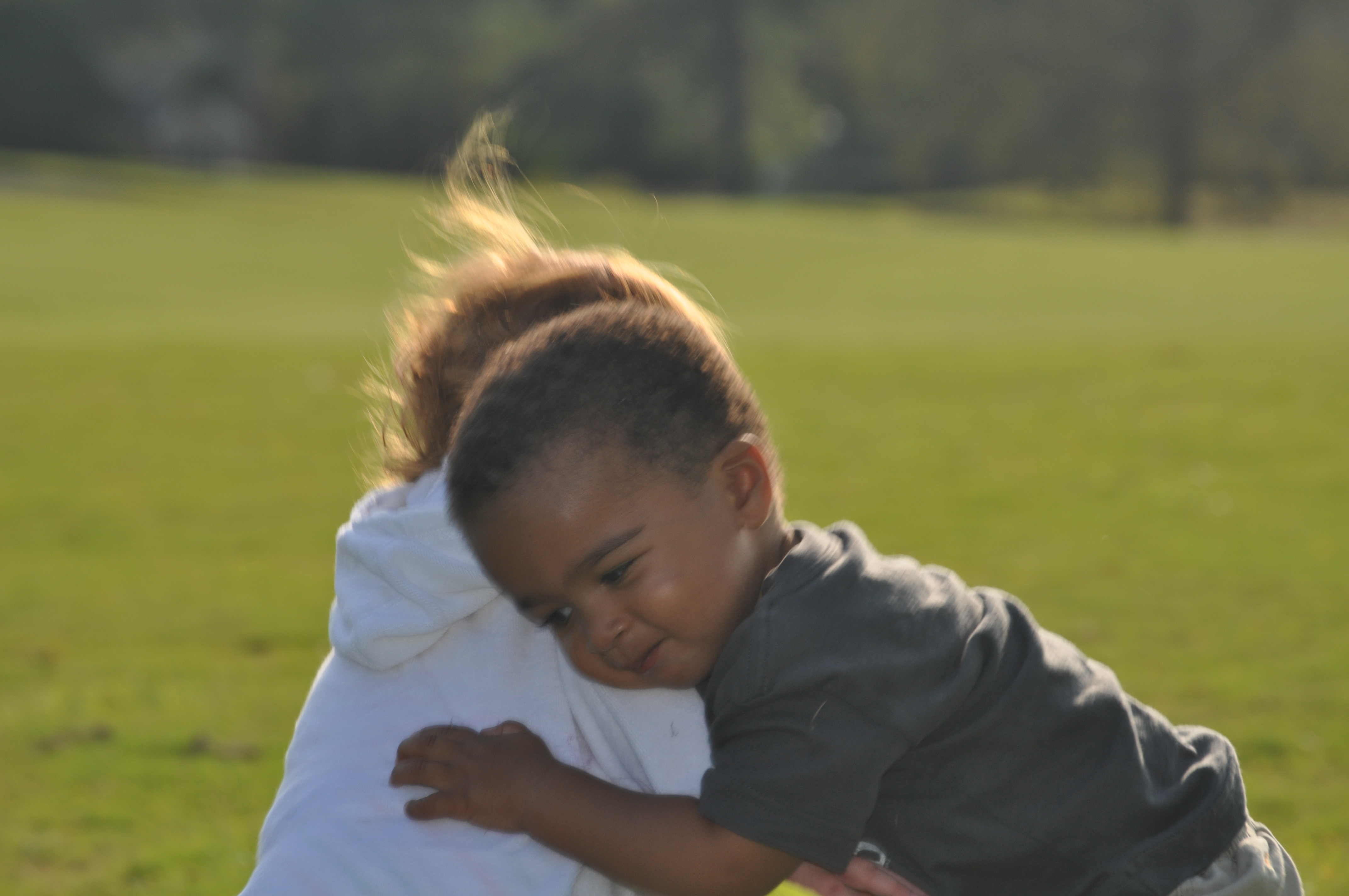 This time Nolin thought that Maggie would be able to carry him on her back so he tried to climb on. We may need to teach Nolin that the back rides he enjoys should be from adults not other kids.