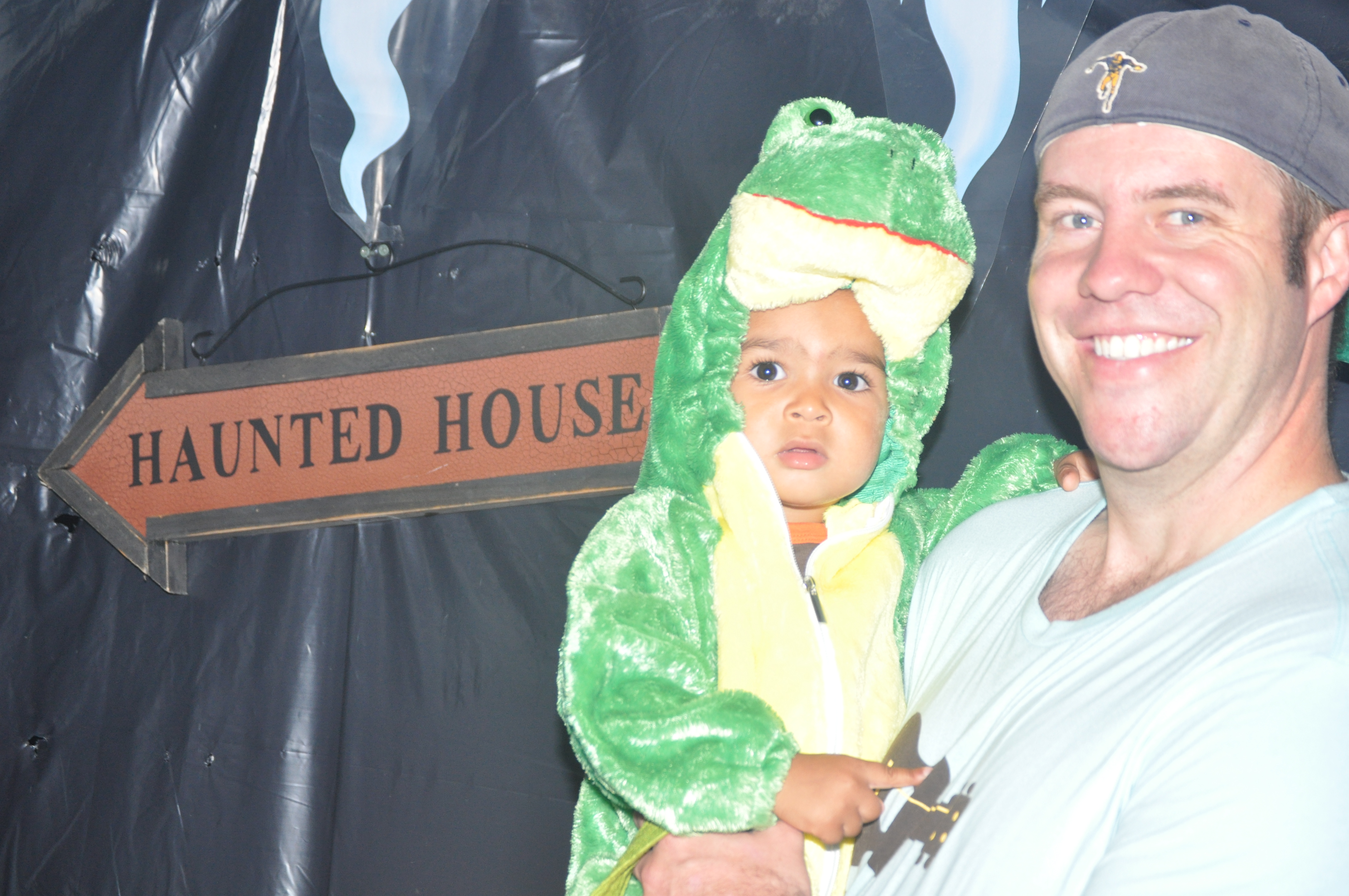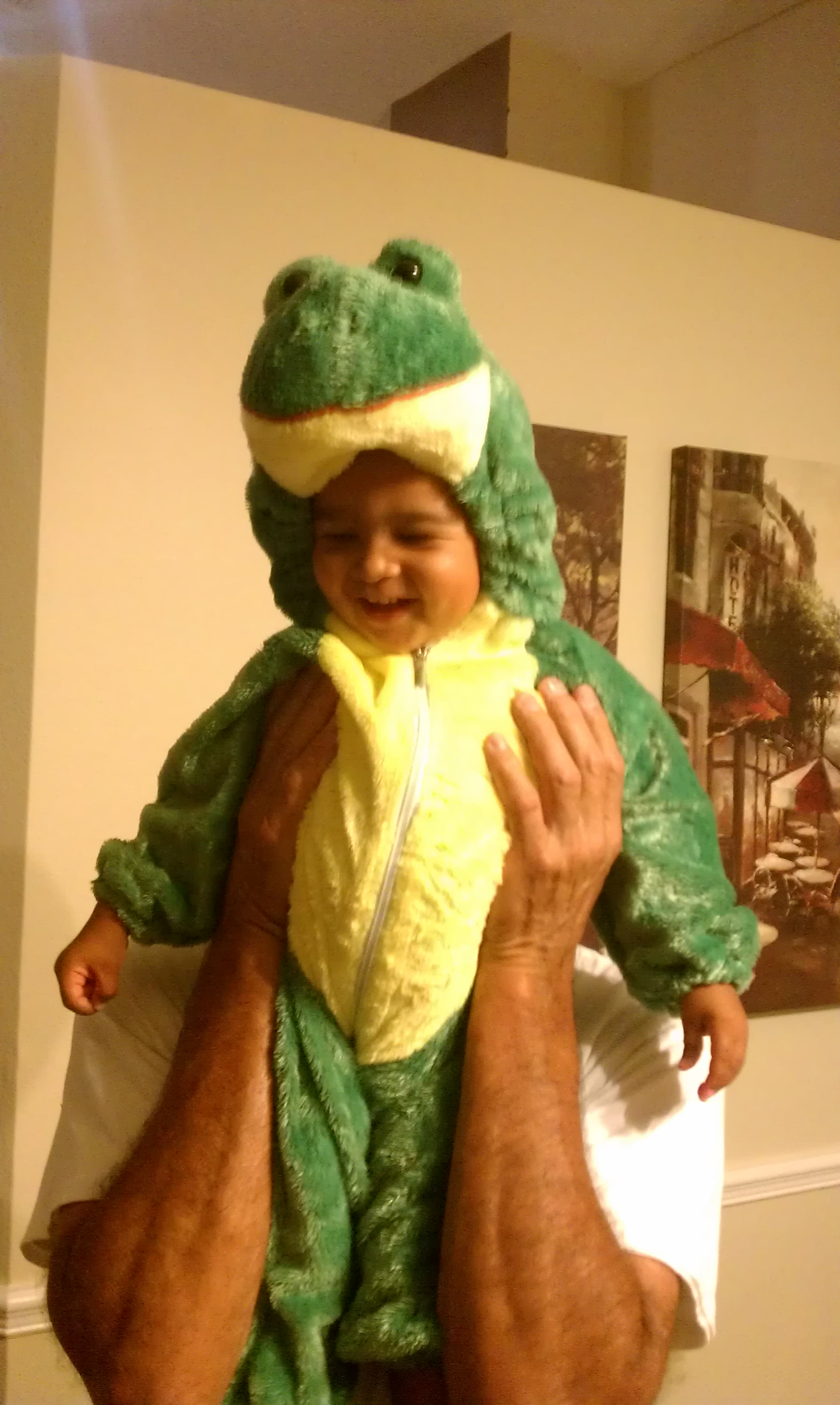 It was a simple trip to Sam’s Club (one of Teresa and Nolin’s favorite hangouts), where Nolin discovered the costume that would eventually help him keep the evil spirits at bay. Yes, apparently the evil spirits would be terrified by Nolin…the scary frog.