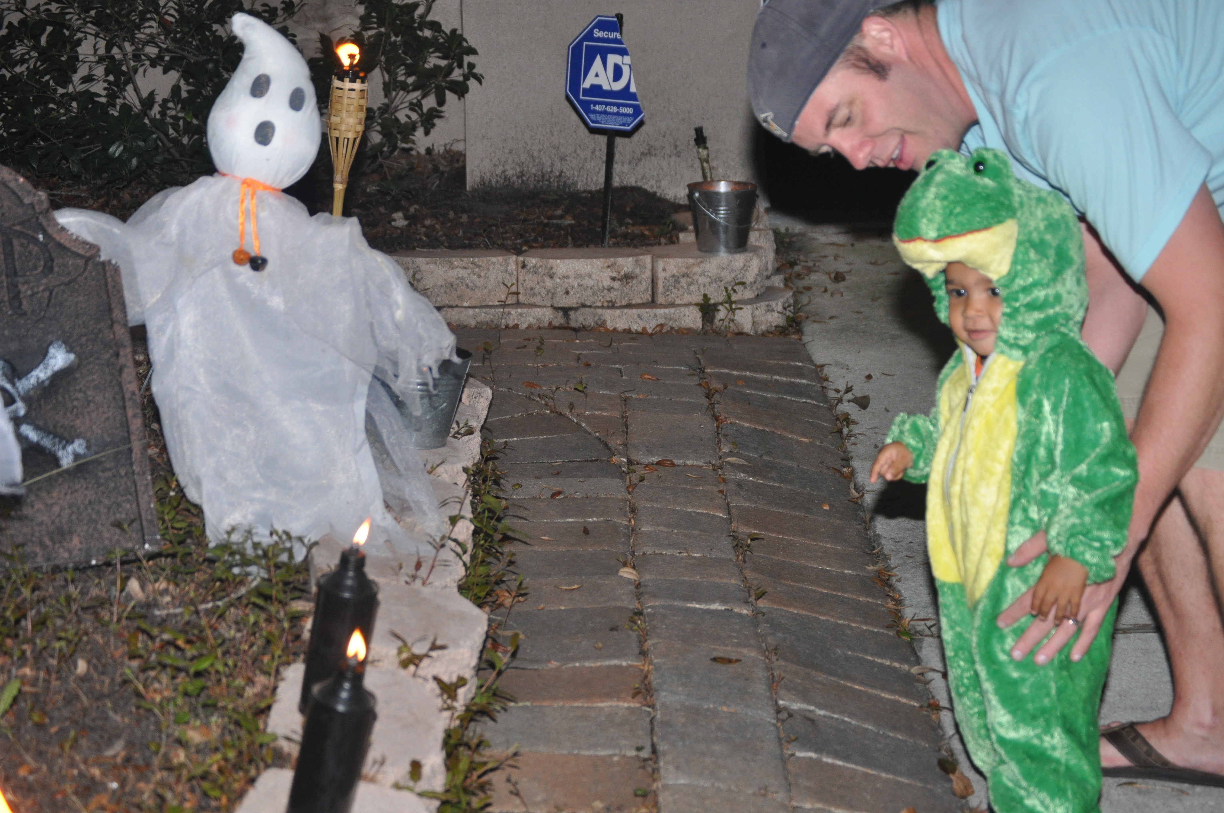 Now that we had a costume, I was getting very excited about Halloween. It didn’t hurt that we also discovered last year a whole other world of Trick-or-Treating taking place just one street over by Jenn’s parent’s house. In preparation for the night, we had decorations for the trunk of our car (aka the candy distribution center) and about 8 huge bags of candy (this would be a far cry from the 12-15 trick-or-treaters we typically received). It reminded me of what Halloween was like when I was a kid.