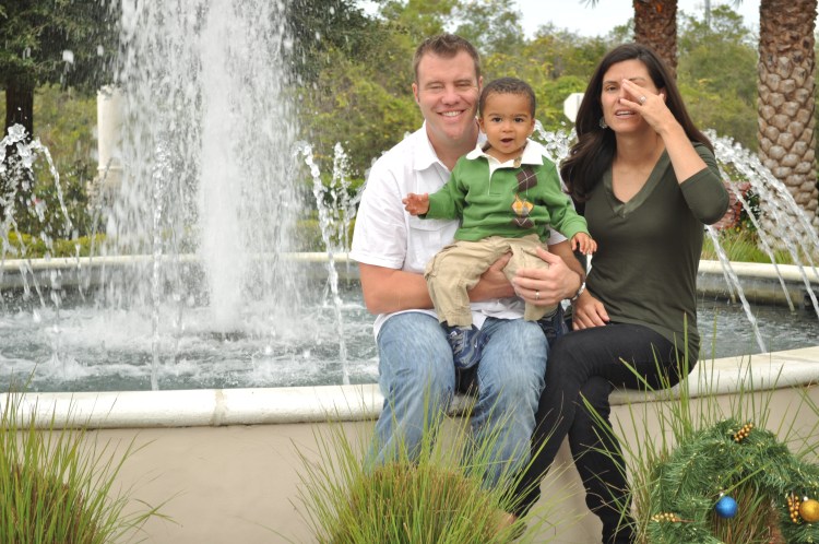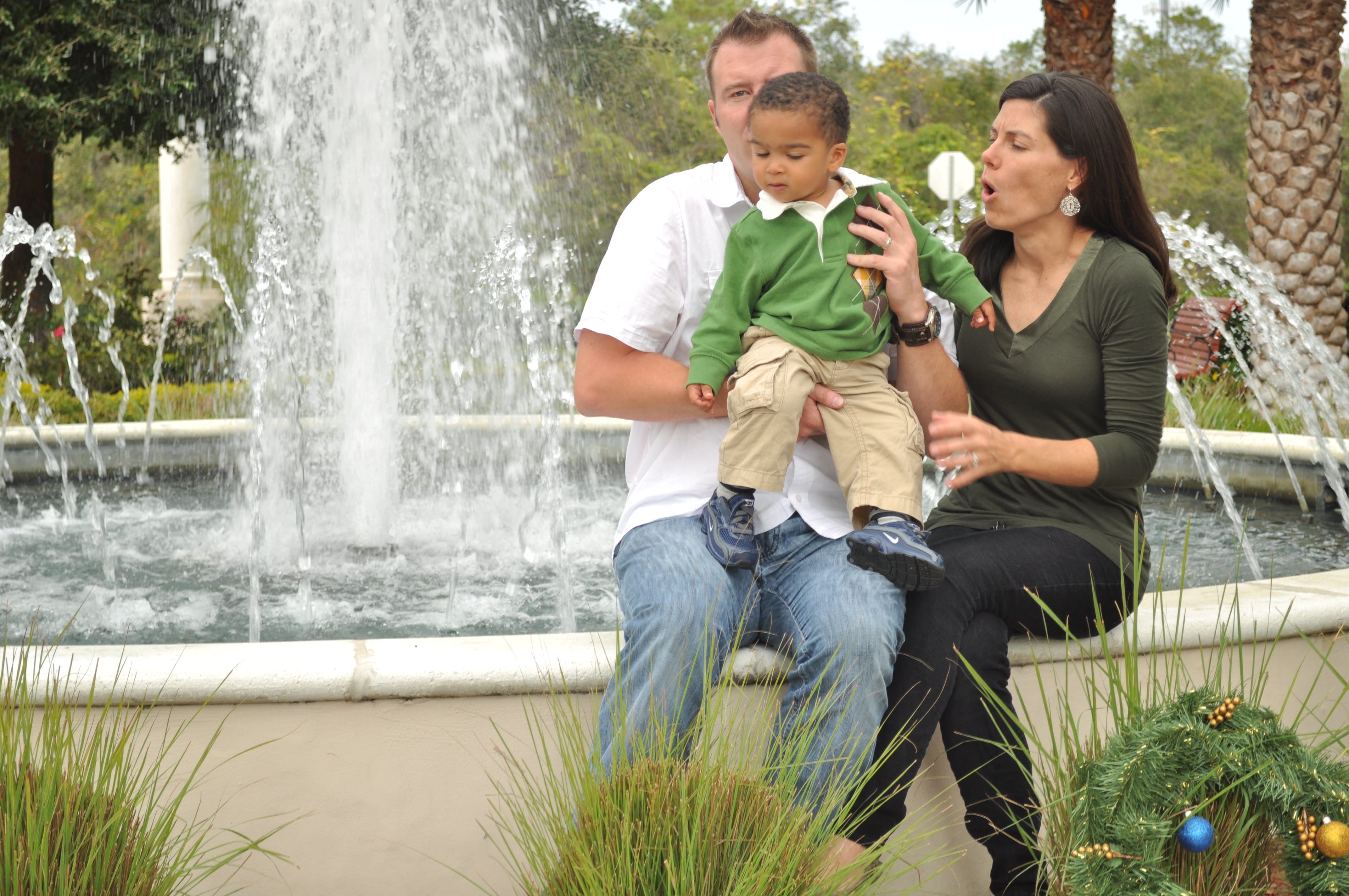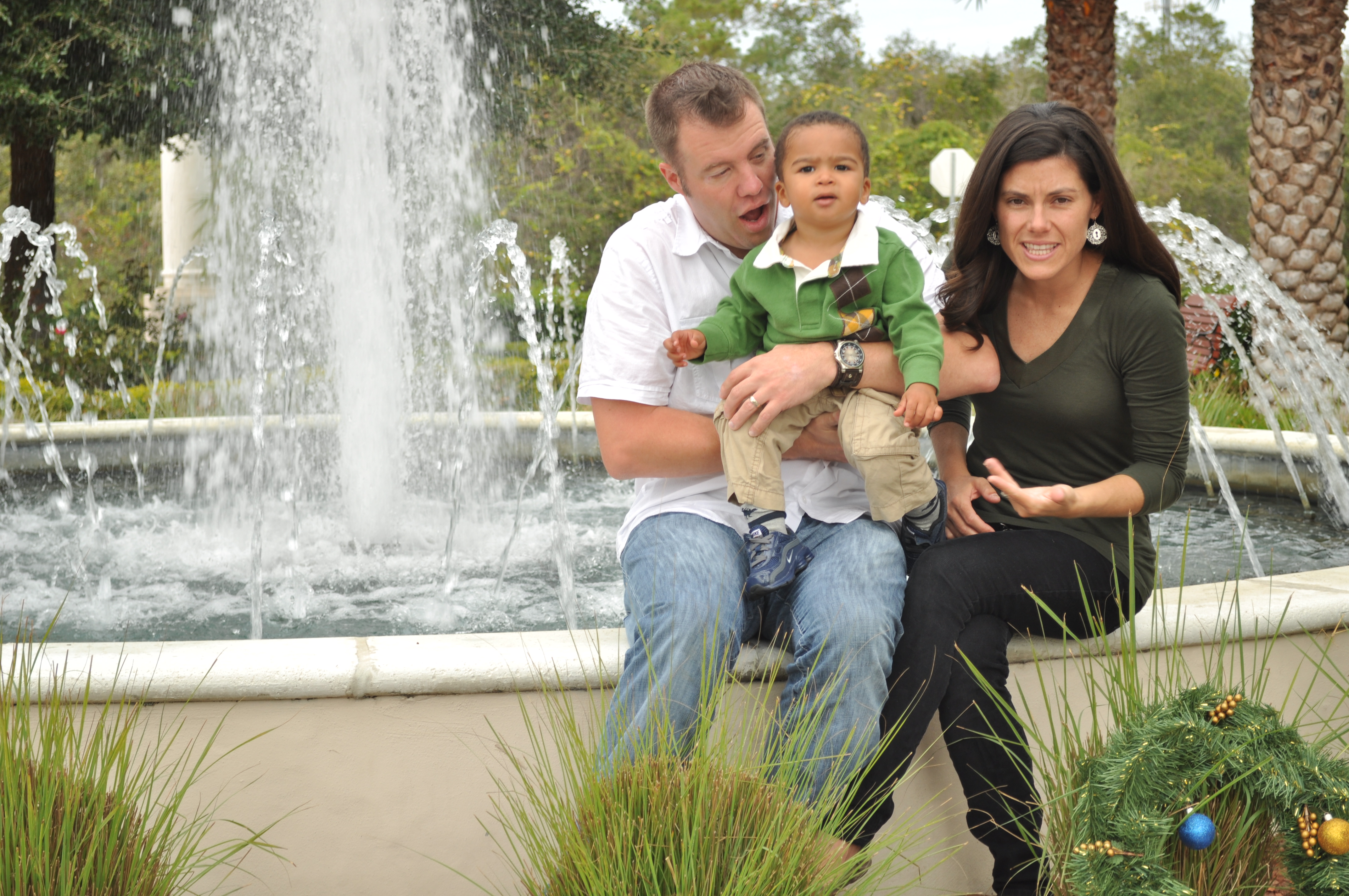 As I try desperately not to fall in the fountain and drop Nolin at the same time, Jenn decides a good yodel would make this picture priceless