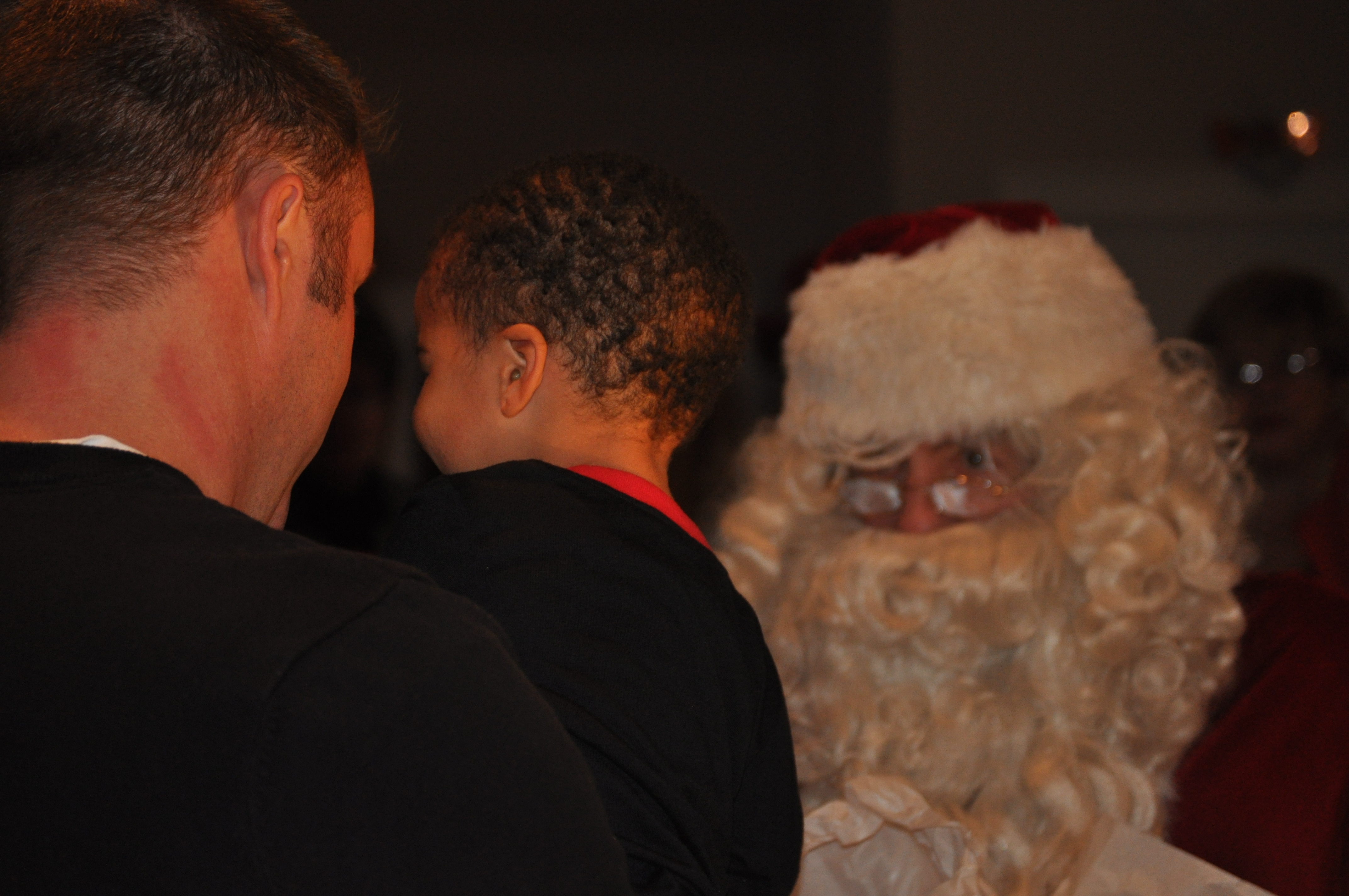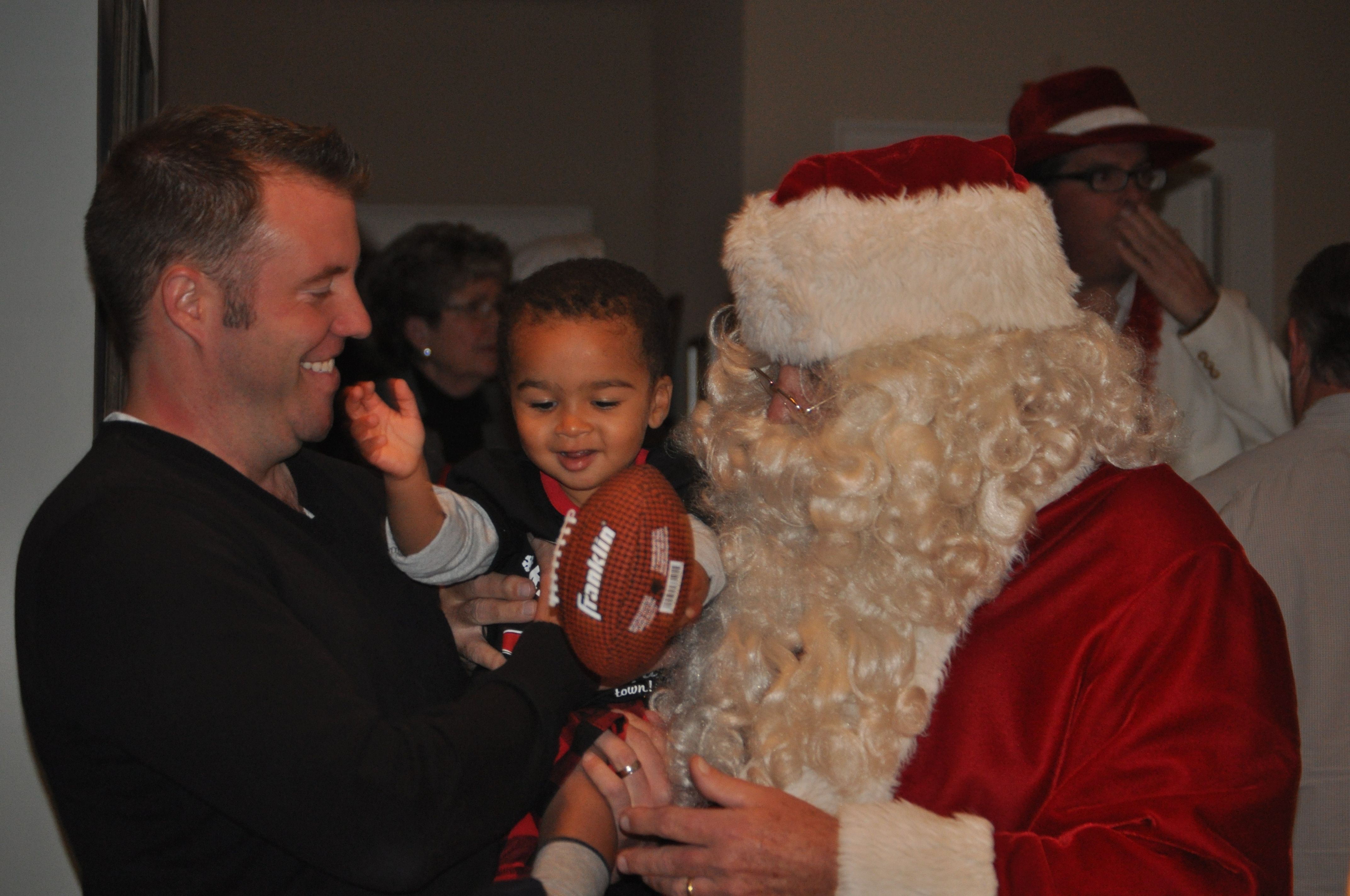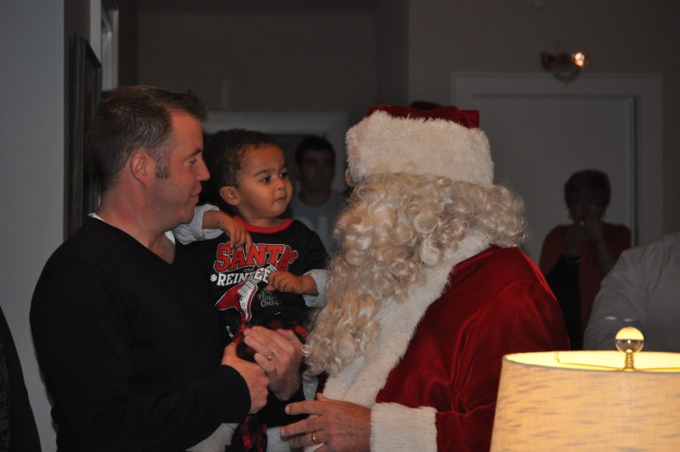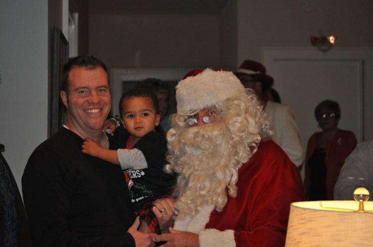 Nolin excitedly greeted Santa with Ho, Ho, Ho Merry Christmas. When it came to allowing Santa to hold him…well he quickly ran to me for protection. Although he was a little nervous he was still very interested and the fact that Santa gave him a football, well that pretty much secured the friendship.