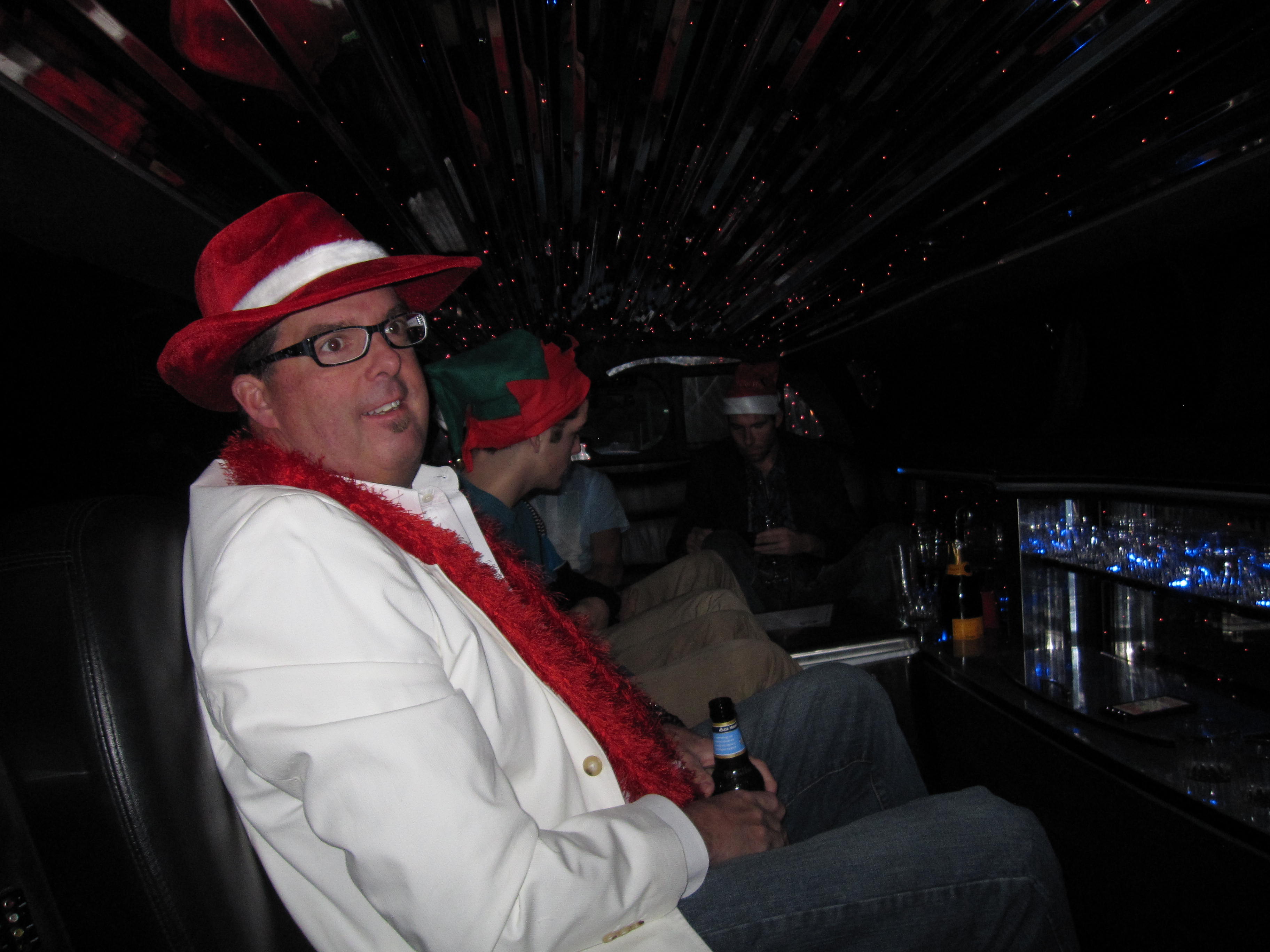 I quickly grabbed the keys to the original old faithful sleigh (my Uncle’s Armada) and headed off towards the distress signal. When I got there it was a scene indeed. Rick, was standing behind the limo sleigh with a Santa hat on, trying to direct traffic to other lanes so they could get around as the sleigh sat broken down in the middle of traffic.