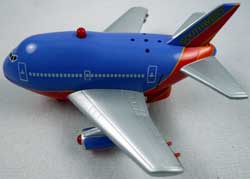 I spent my last night and morning in San Diego trying to find a trolley to bring home for Nolin, but alas San Diego is not San Francisco and I couldn’t find one anywhere. So I got the next best thing…A Southwest Airlines Airplane that lights up and rolls forward when you pull it back.  Since he loved this airplane when he played with our friend’s a few months ago…I knew this would be a big hit.