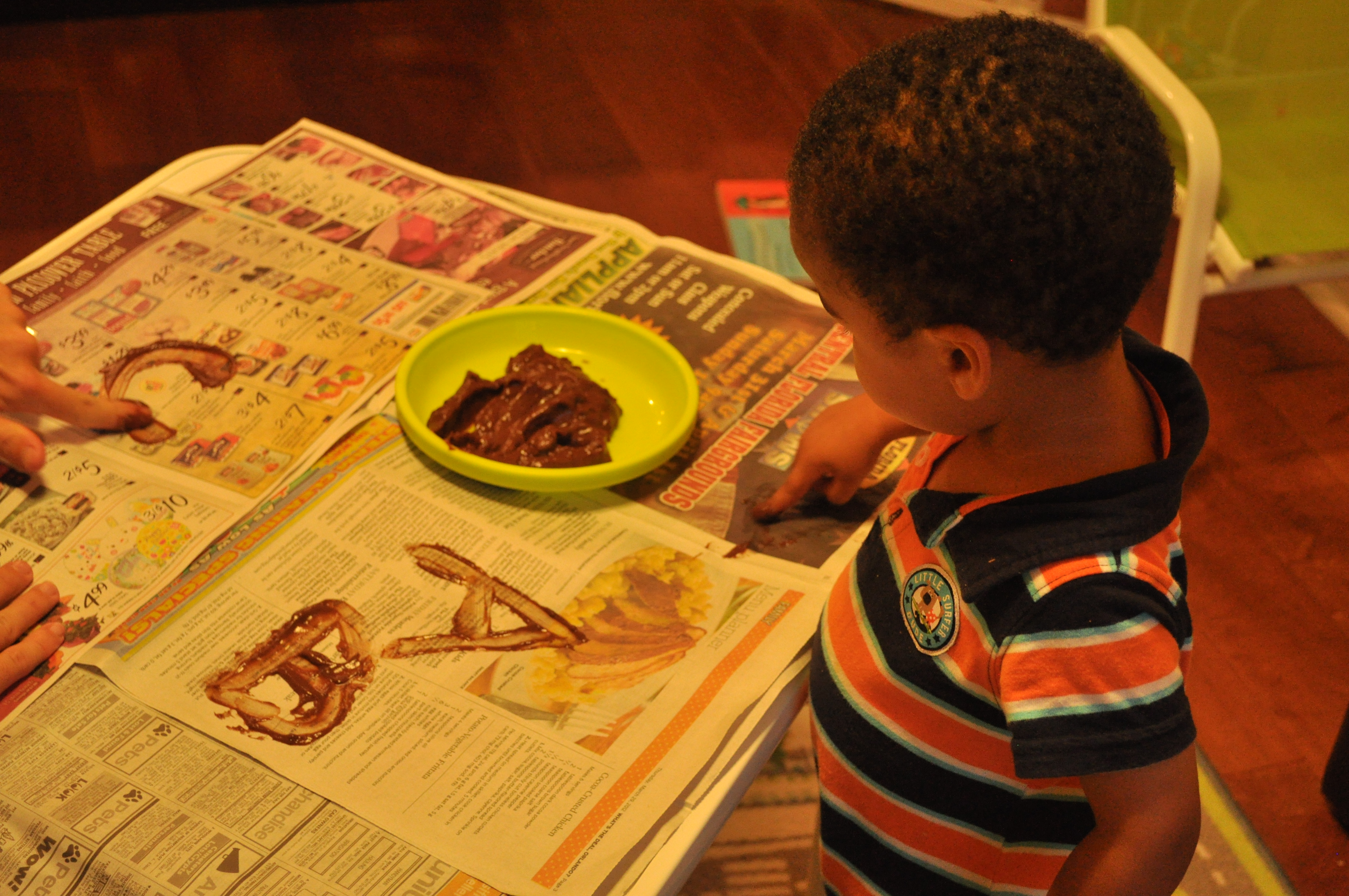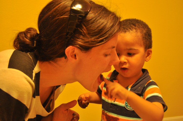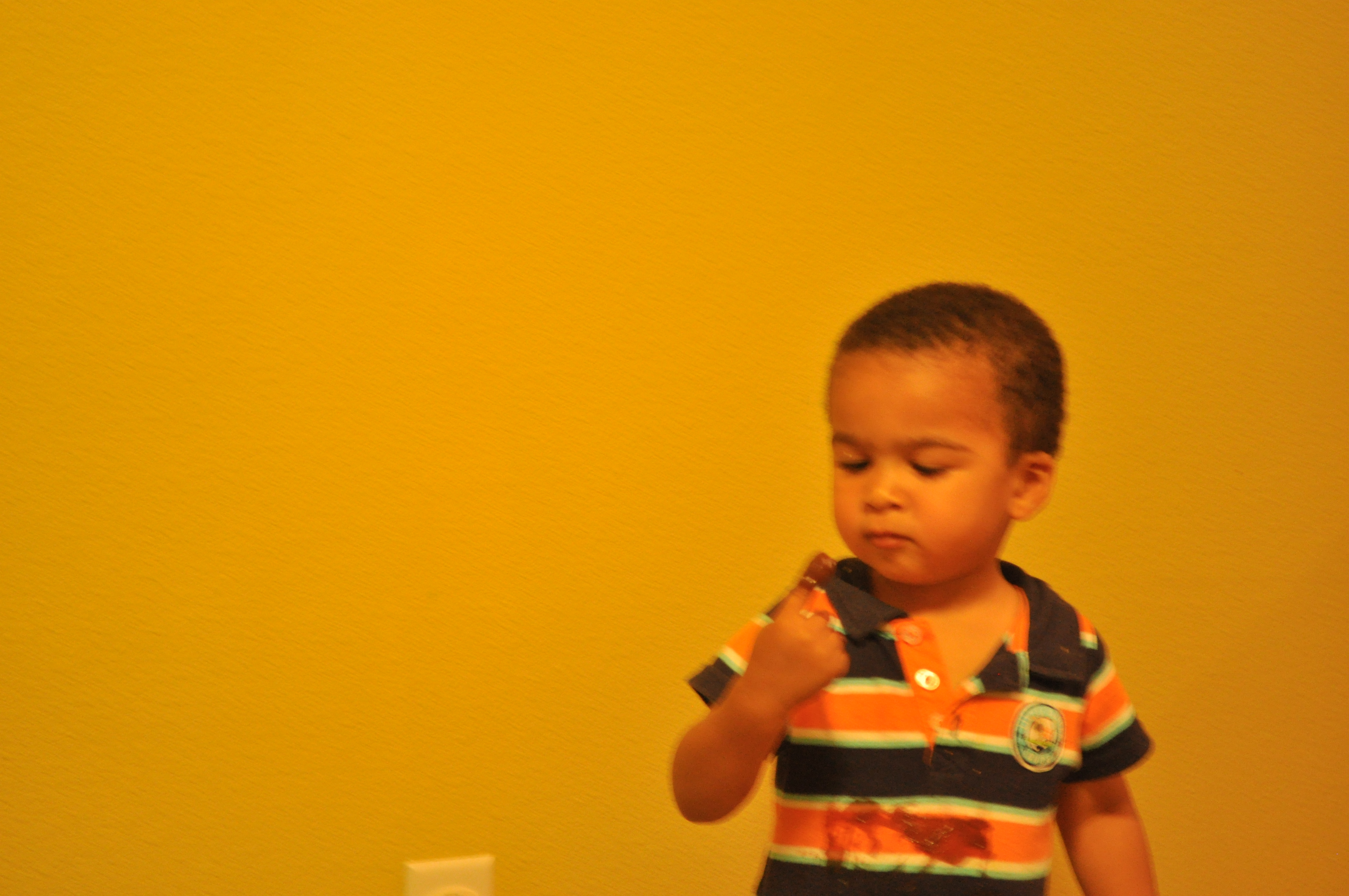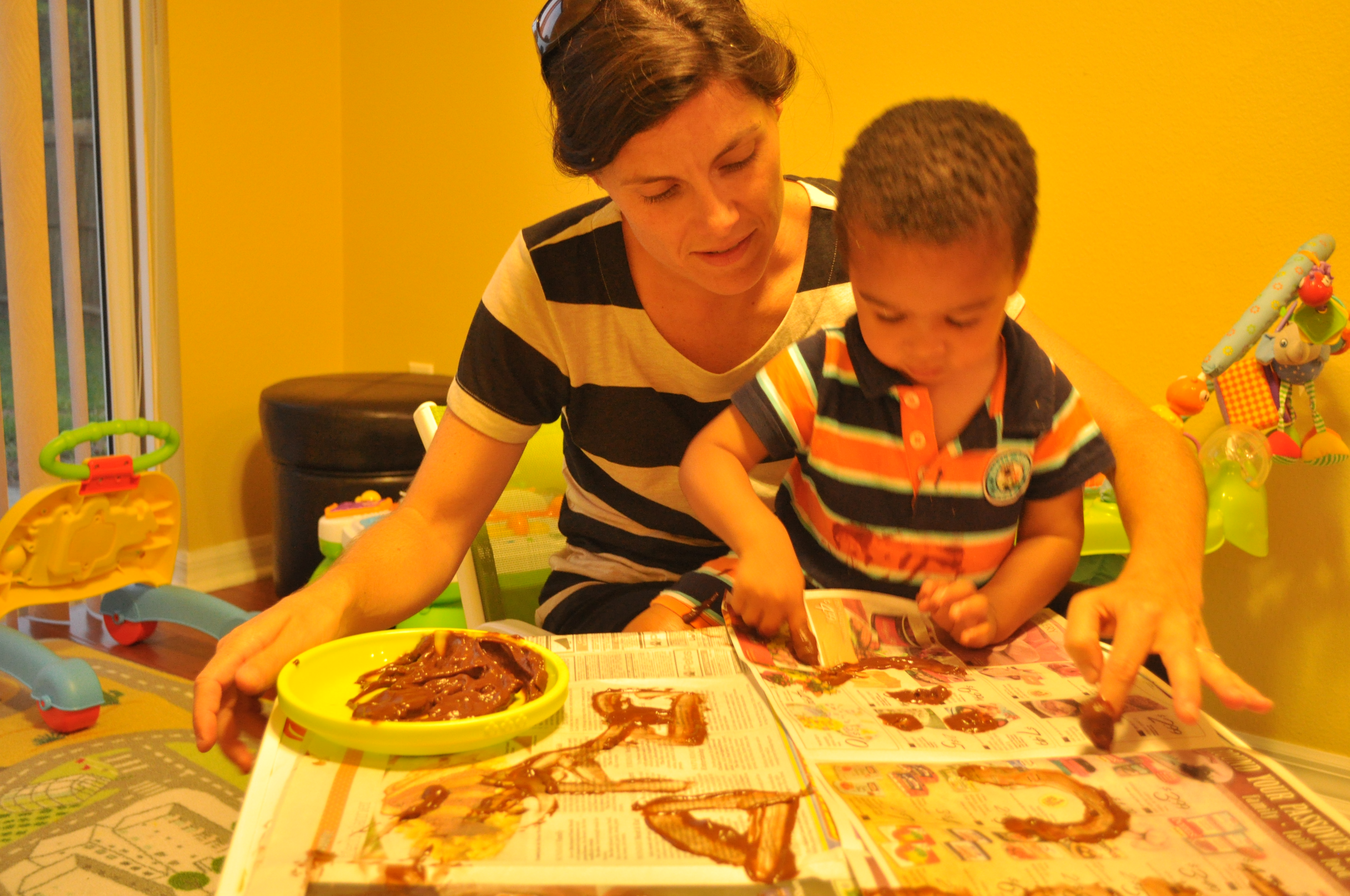 For now Jenn is working with him to try to express his creativity by finger painting with pudding…it doubles as a delicious treat and is much easier to remove from the walls and tables.