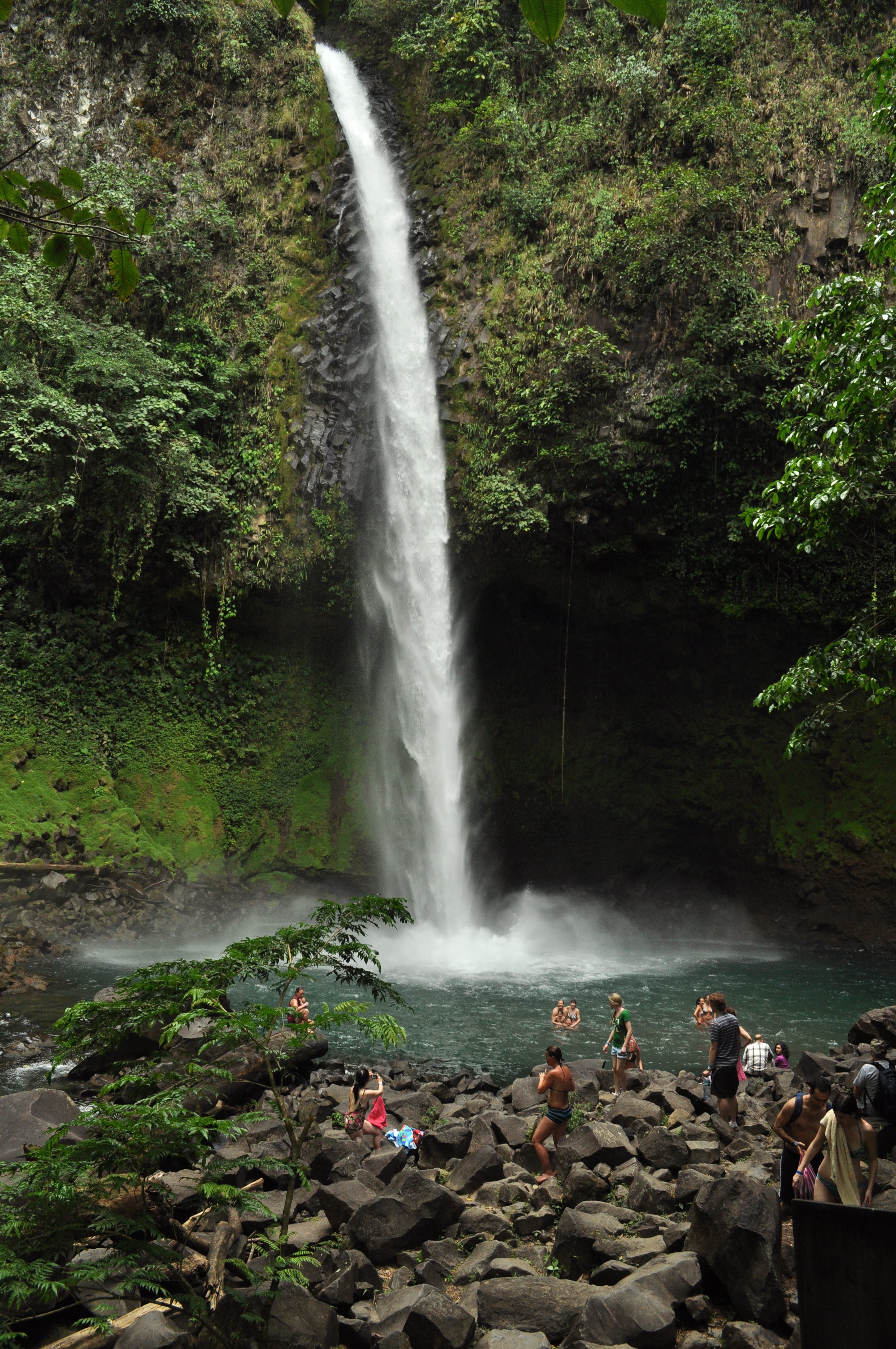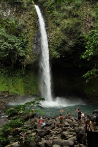 After getting checked in (and taking care of a slight AC issue) we made our way to the La Fortuna Waterfall. It was a pretty easy hike down to the base (a little more difficult on the way back up), and incredibly impressive once you got there. The water was cold, but Jenn braved it and jumped in. I on the other hand, didn’t have shoes to navigate through the rocks into the water, but wasn’t too terribly upset because it was freezing.