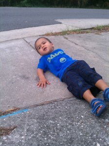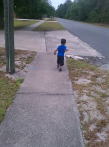 Besides a very active nose, there really were no signs of the sickness. So after putting together several puzzles, emptying out the tissue box (to the tune from The Wiz…get em on out, get em on out, get the boogies on out cha nose) and watching Thomas get derailed off his figure 8 train track numerous times, I figured it would be a great idea to take a walk to the park. No need for a stroller, we were just going to be a dad and his son walking down the street to go on the slides.