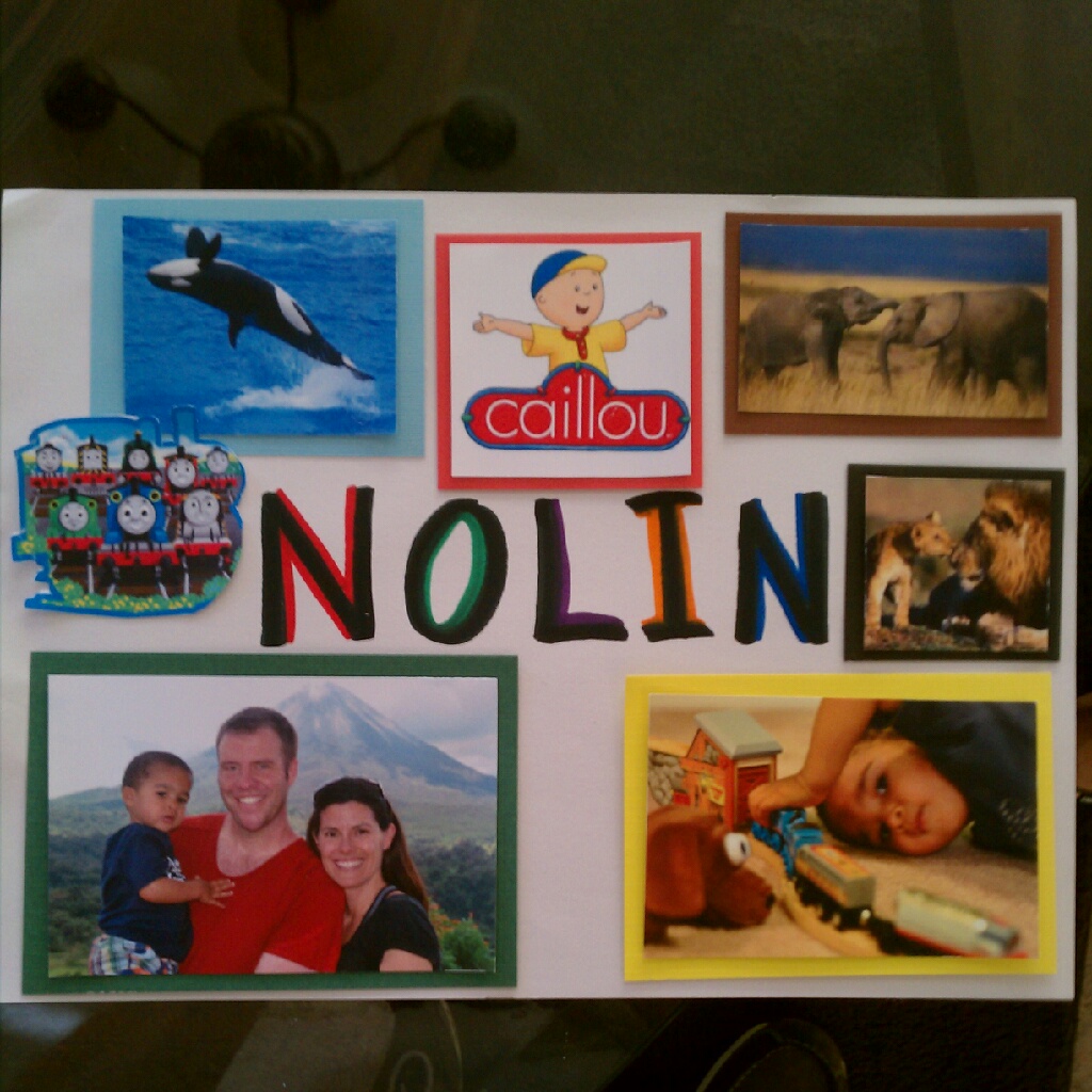 Luckily our air conditioning broke Sunday afternoon, well not really lucky since we live in Florida and it’s really hot, but anyway. This meant that I had to come home from the office Monday morning to wait for the A/C repairmen while Jenn and Nolin headed to school. This gave me enough time to find some pictures and print them off to use for Nolin’s place mat project. It also gave us an opportunity to realize that the assignments and projects are only going to get more difficult and stressful moving forward.