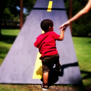 I quickly grabbed Nolin from his high chair and tried to wipe yogurt from his face. I basically took the yogurt around his mouth and smeared it all of over his face so that he slightly resembled the Heath Ledger version of the Joker. Oh well, we have to rescue mommy, so no time to worry about a fashion show. Plus if he gets hungry on the car ride over…dinner’s served!
