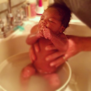 Grace’s first bath hit the other end of the success spectrum. She loved it. We just set up a large bowl bath in the sink for this first bath, and she couldn’t have been happier. Getting out of the bathtub, well that wasn’t quite as much fun, but once she was wrapped up in a blanket all was right with the world again.