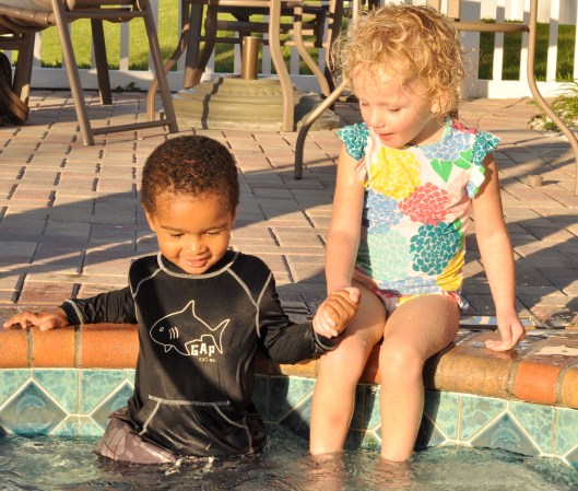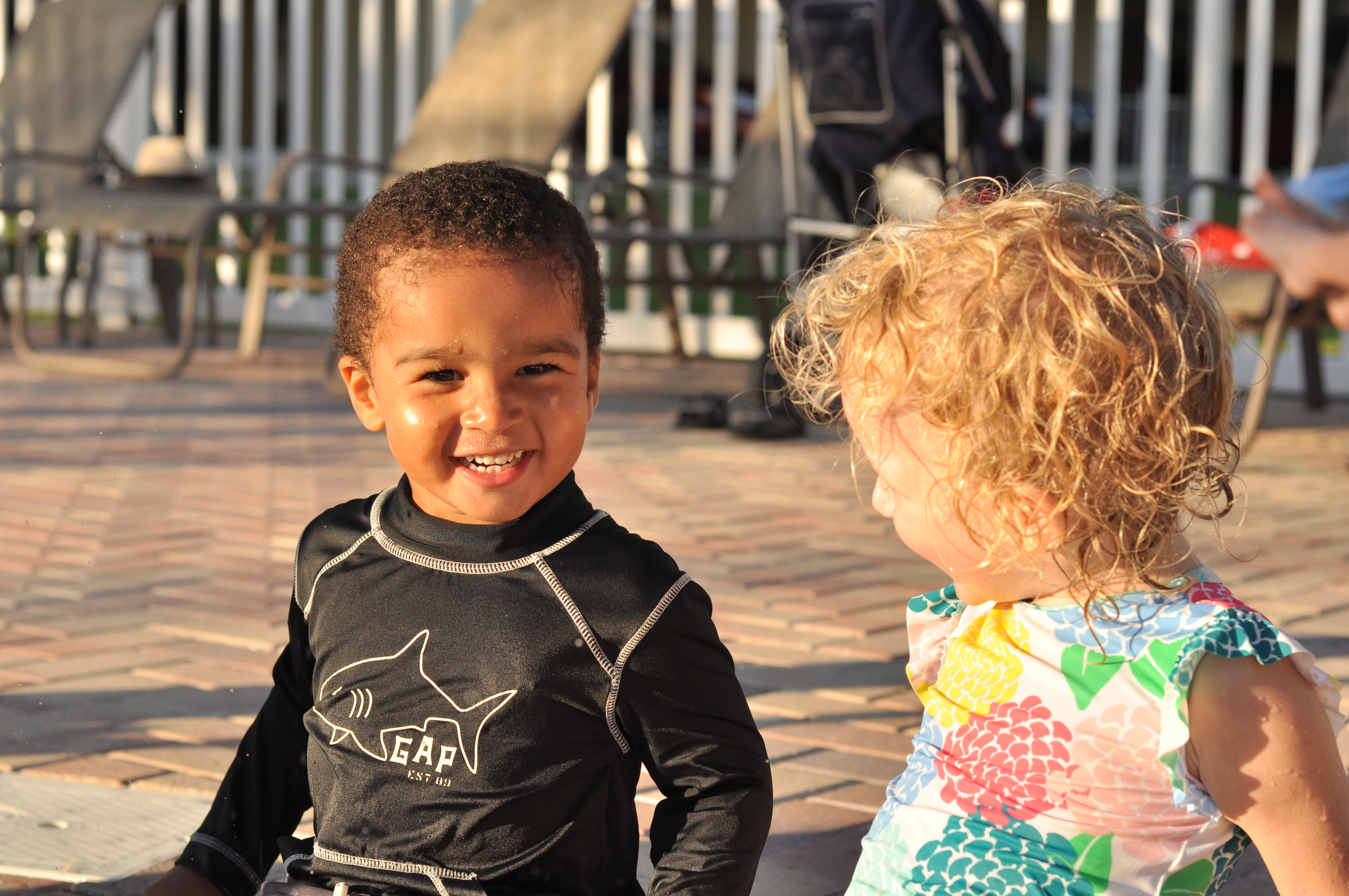 Finally we also took our first road trip. This was a test to see how a 13 hour drive to Virginia may play out. We went to Treasure Island to visit our friends who were vacationing there. Last year when we went their daughter was interested in Nolin, but he really wasn’t sure what to think. This year they were both the right age and had a good time playing together.