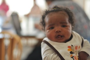 Shortly before we left, my dad was feeding Grace and holding her (just like Nolin, she found a favorite spot on my dad’s chest). After a little bit, he said Patrick, I think Grace may have wet herself. I turned to look at the two of them, only to discover that in fact it was a little worse than that.