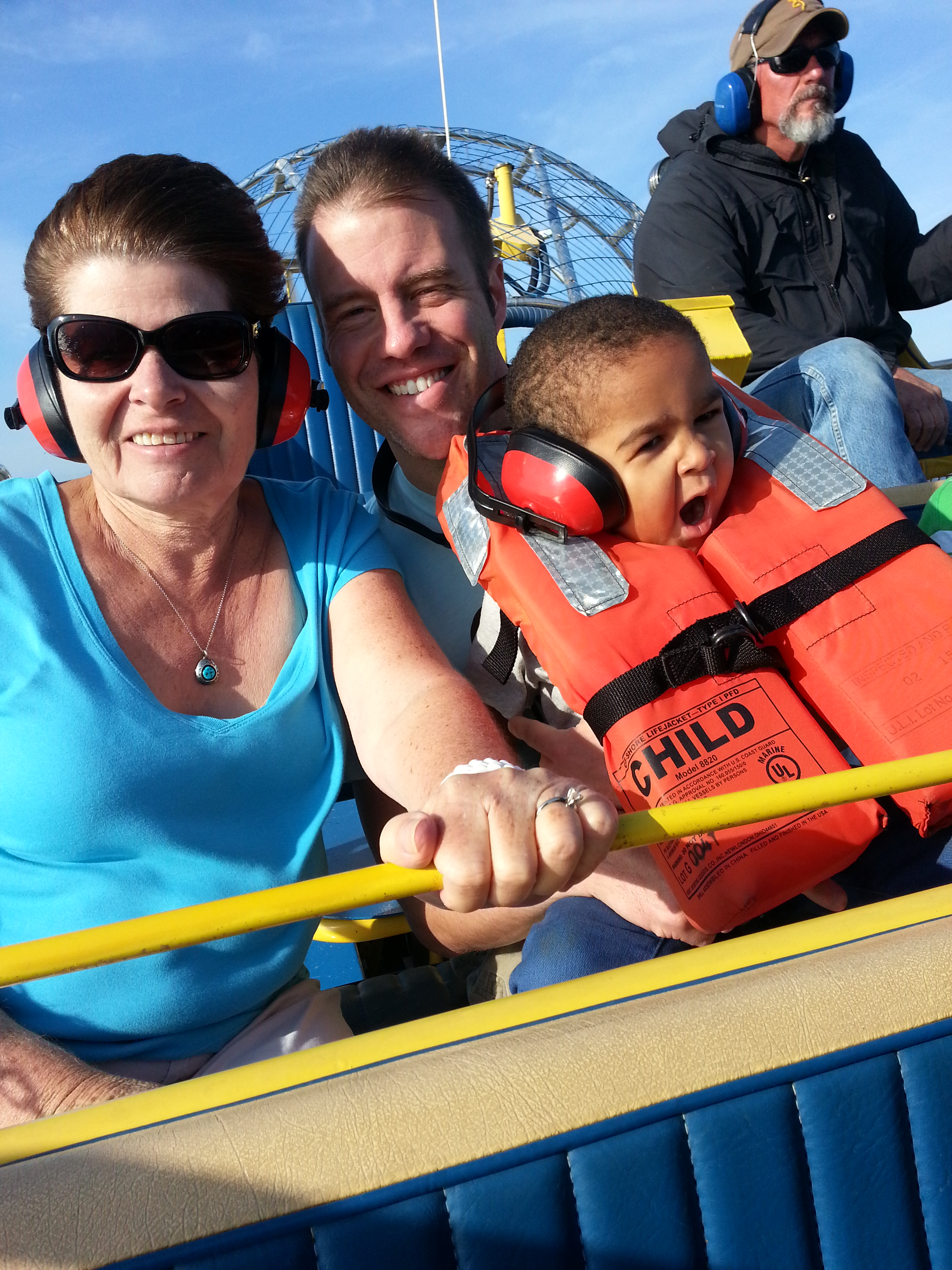 We also got to go on our first air boat ride. I am not sure why we have not done that before because it was such a cool experience despite the fact that as we got on the boat they were just discovering an abandoned boat and two boaters missing from the night before.