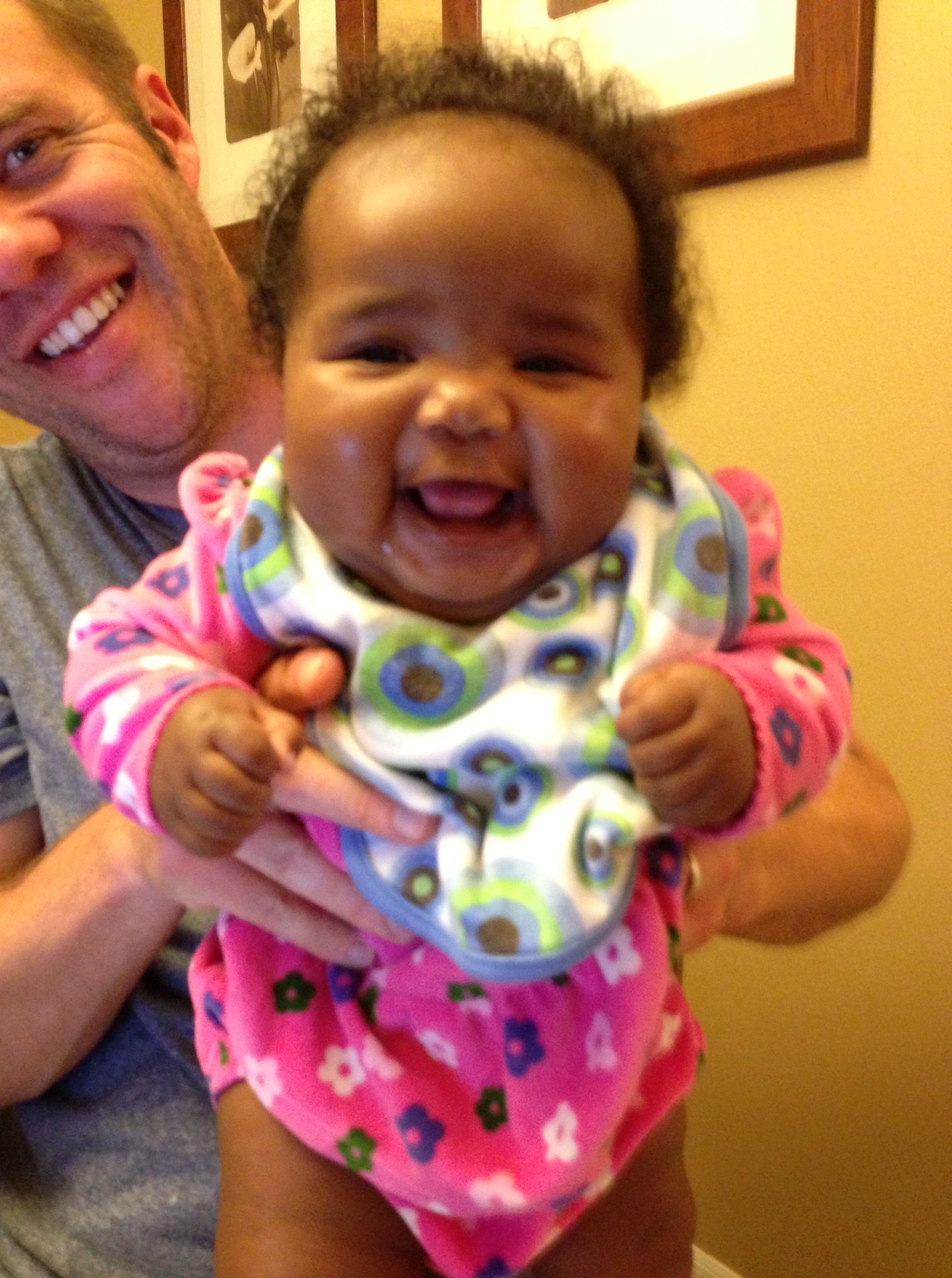 Finally on news updates about Grace, she had her 4 month doctor’s appointment. Growing like a weed is an understatement. At 4 months she is 16 lbs. 14 oz. (97th percentile) and 24.5 inches (50-75 percentile). She is going to be one big happy girl and we love it!