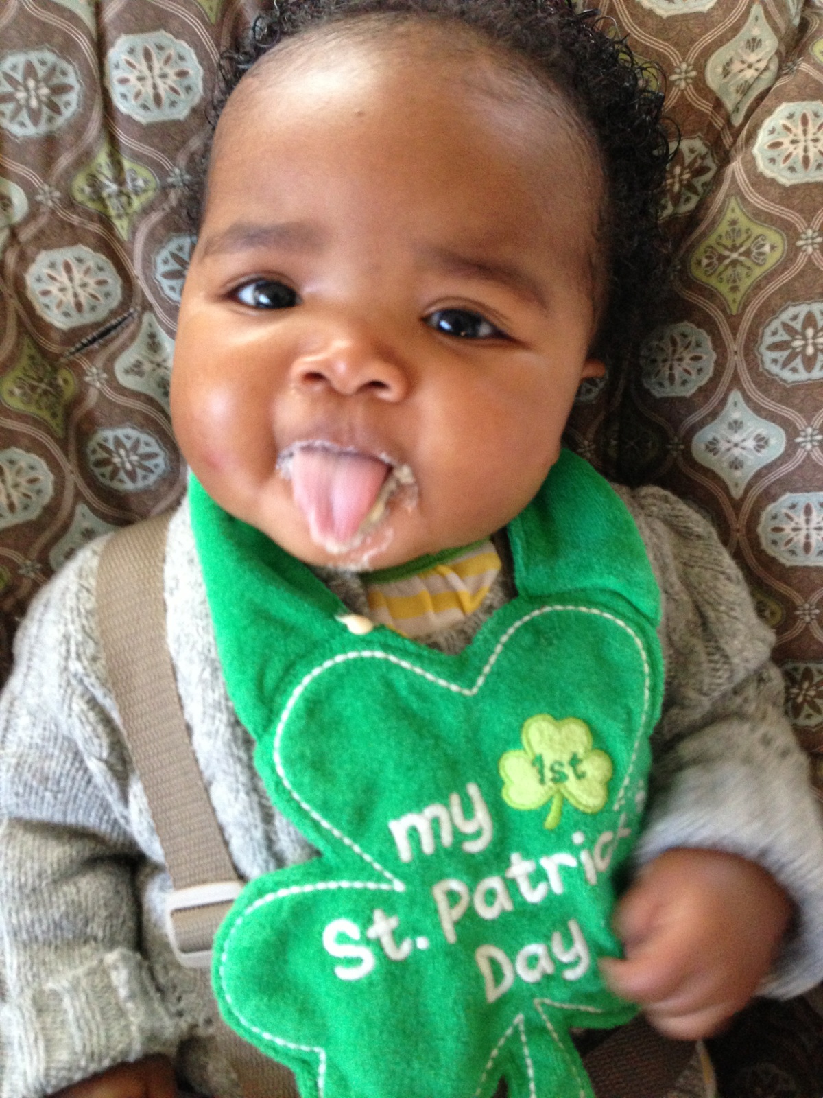 During the middle of this month (St. Patrick’s Day to be exact), she began eating her first bites of food. She wasn’t 100% sure what to think about it, but she did great!