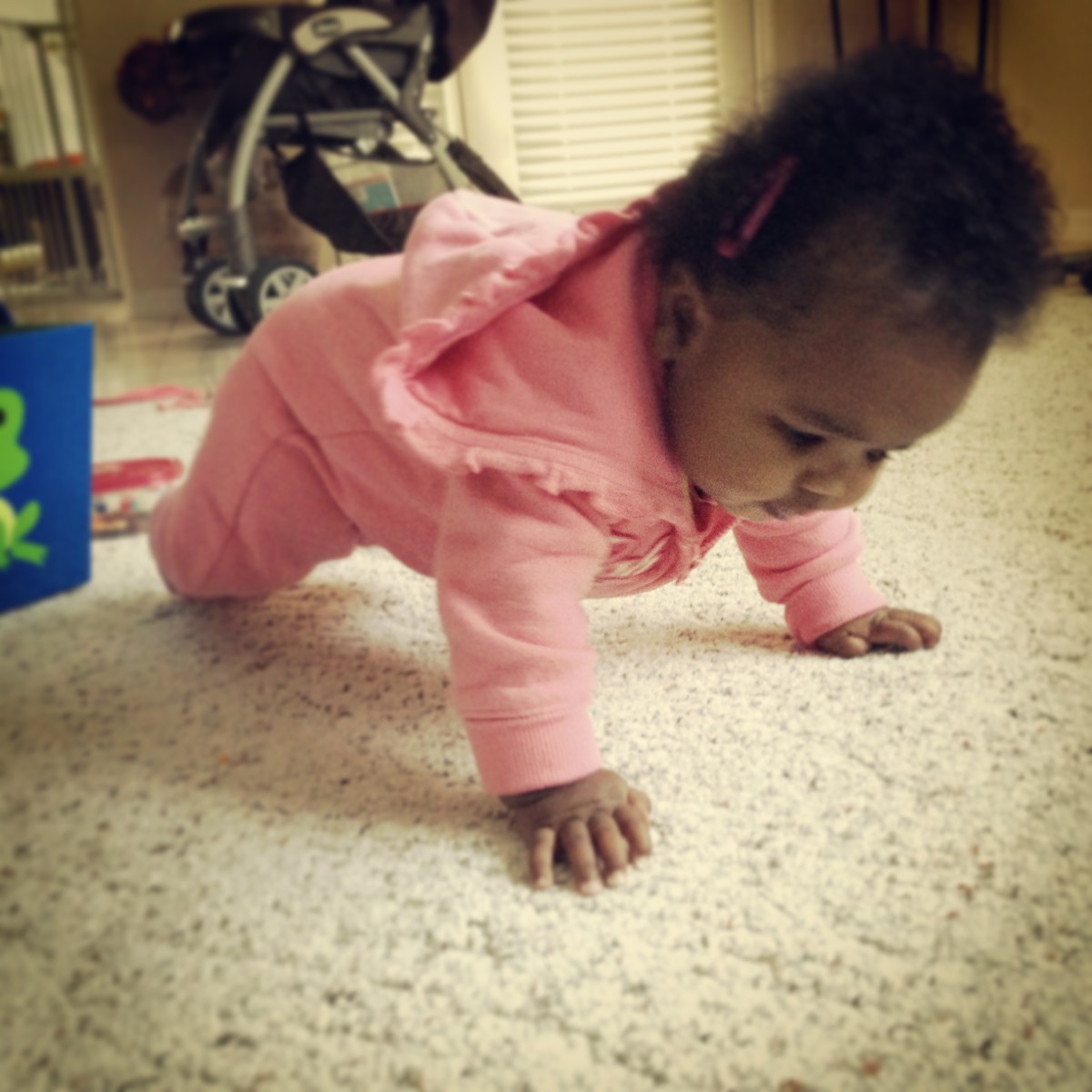 And she is making her first attempts at crawling. I think she has decided to skip the army crawl phase and just get to moving around. This is probably a good thing for her as she has a very active brother to keep up with, and probably not such a great thing for us because now things are just starting to get real.