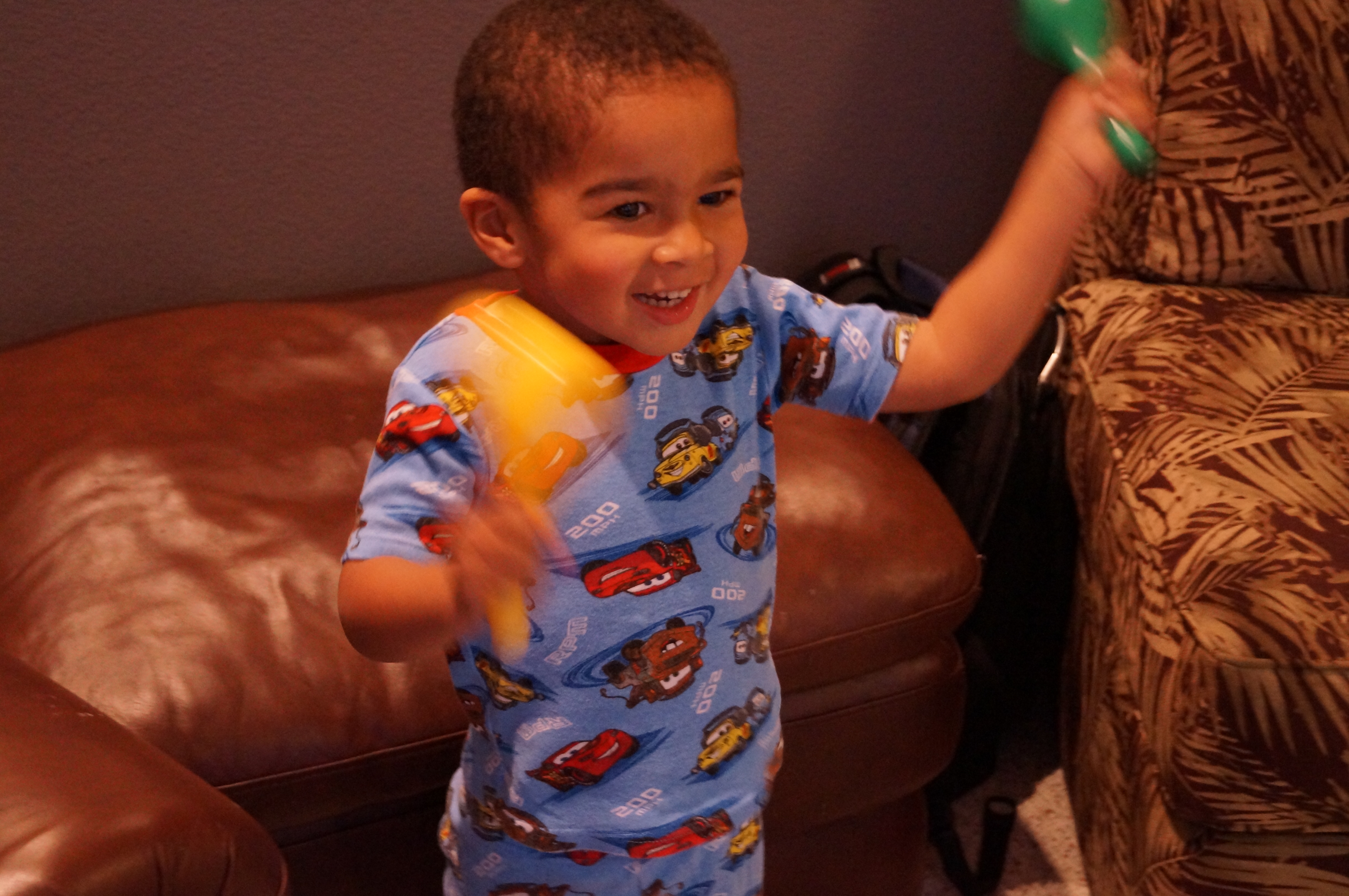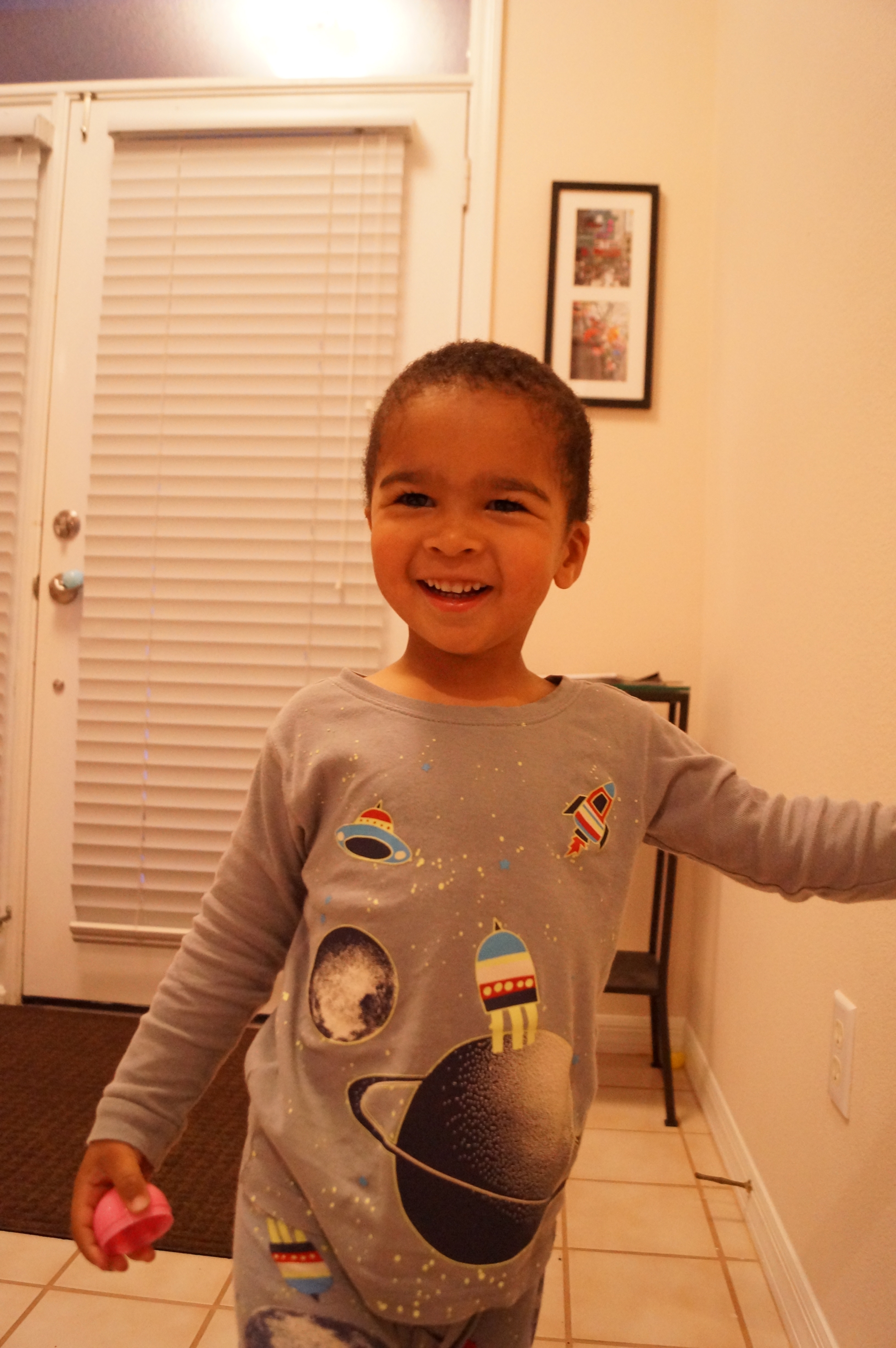 Nolin woke up at about 2am screaming for mommy, but he got daddy which seemed to suffice as he fell back asleep (as did I) in his bed pretty quickly. I know, I broke all the rules regarding children sleeping, but it was 2am and honestly do the rules really apply between the hours of 12am and 5am?