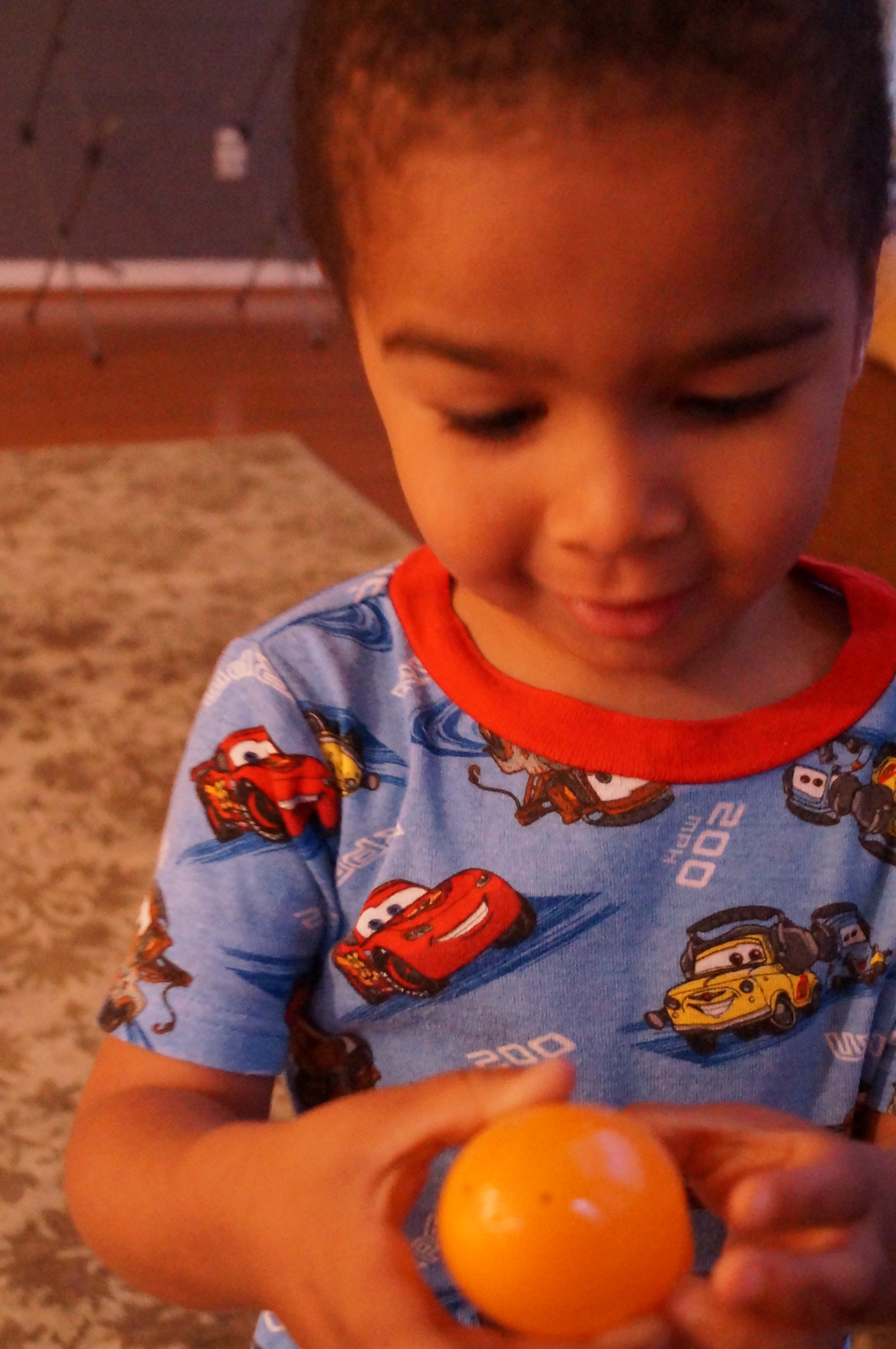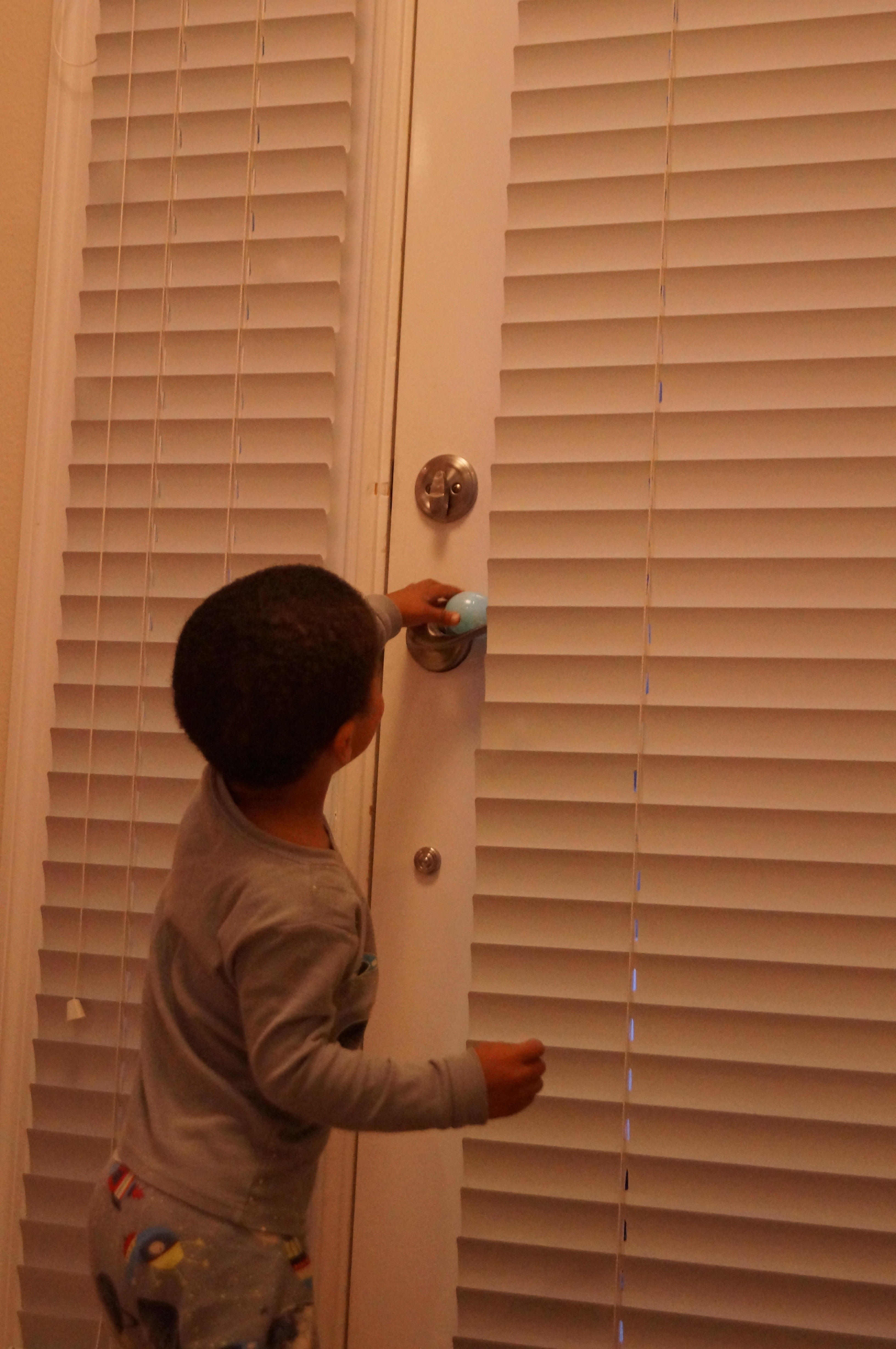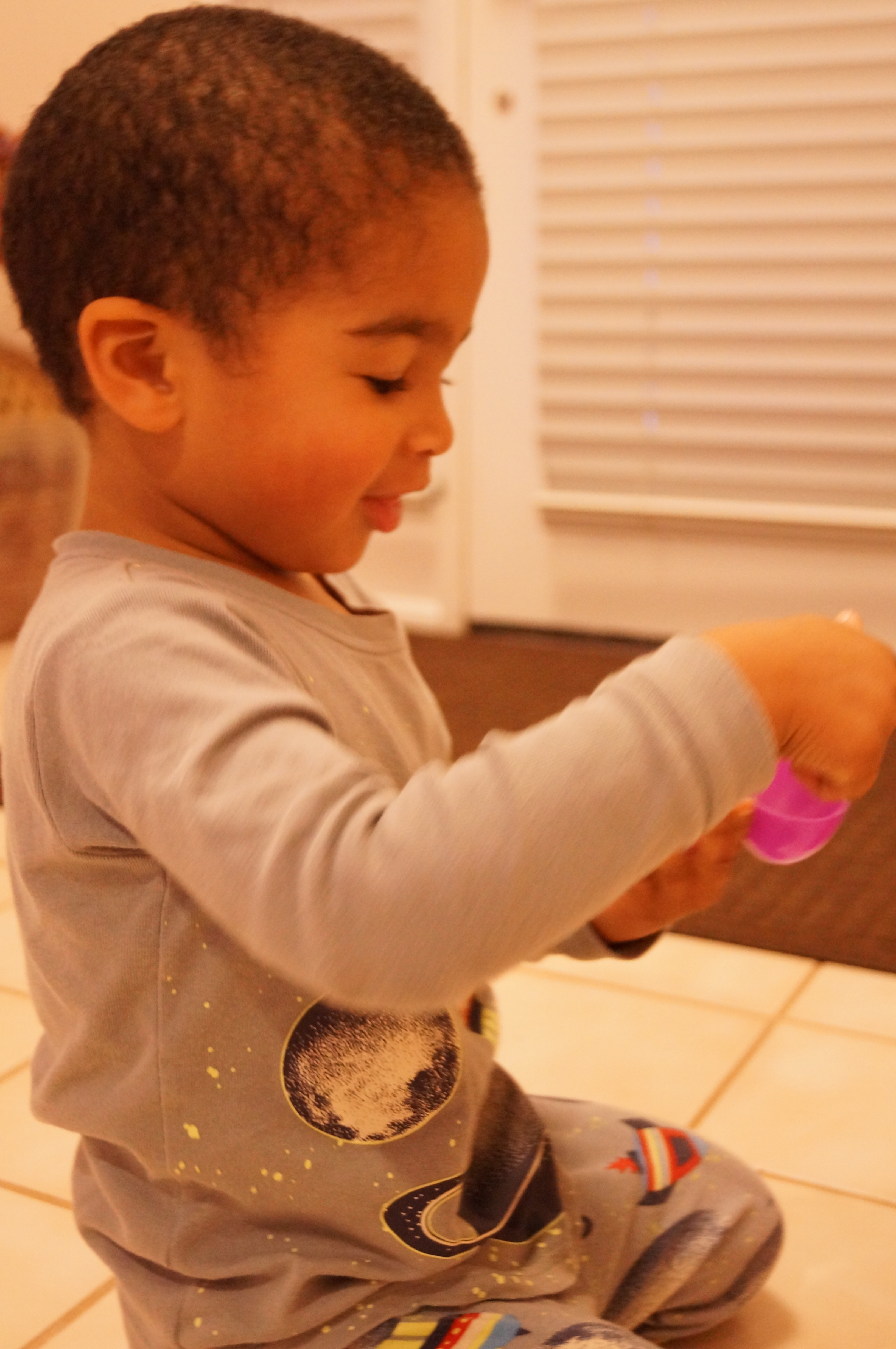 Nolin then woke up around seven, wanting to know if the Easter Bunny had come. The Easter Bunny was smart (or just watching my waist line) and while he hid some eggs with candy many were filled with small toys that looked very similar to small toys that Nolin already owned.
