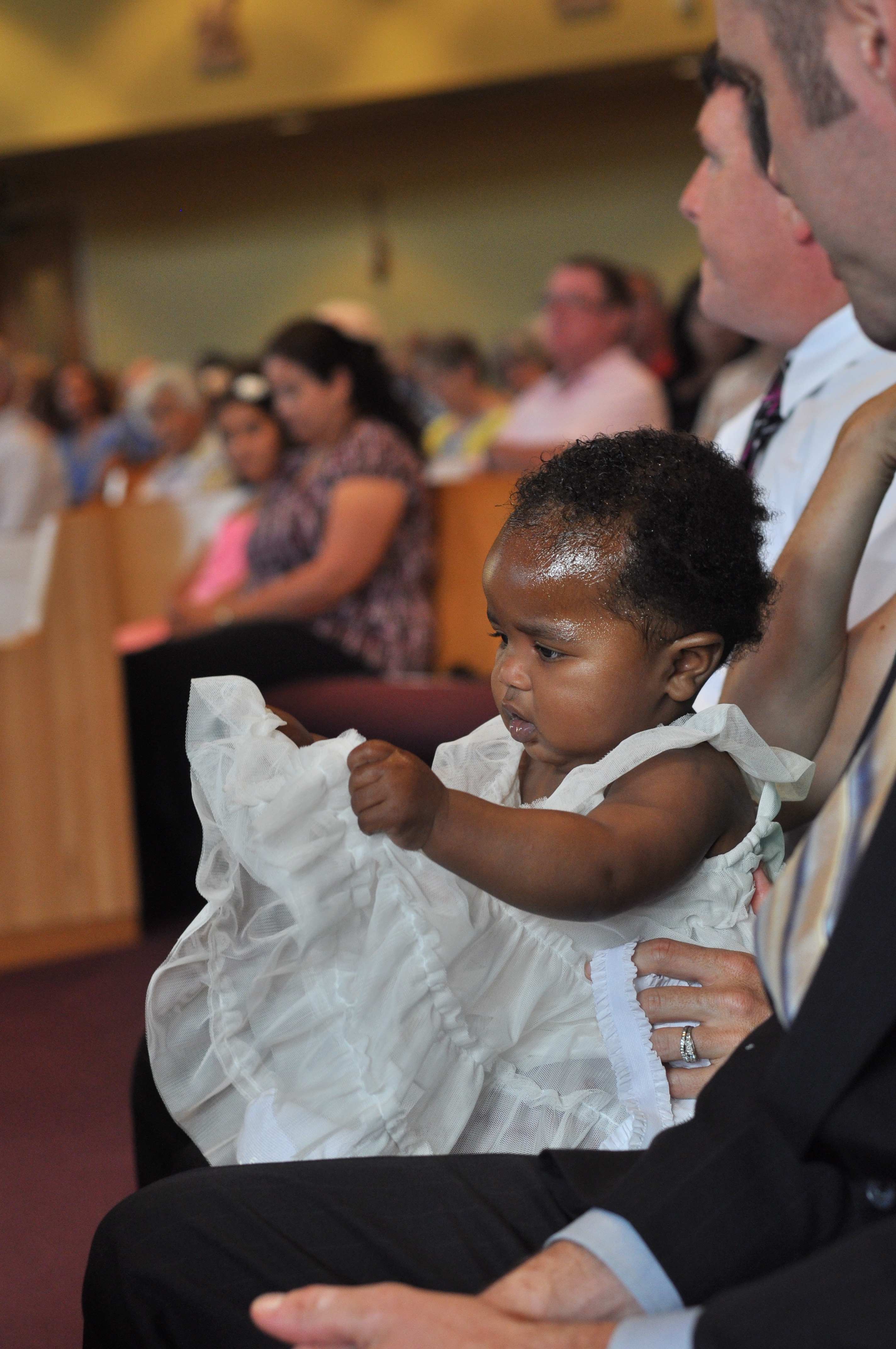 We made it to Church in plenty of time and no one was missing any clothes. Although Grace would be center stage for this performance, she played it cool and simply smiled. This was a little different from Nolin who repeatedly growled during his baptism.