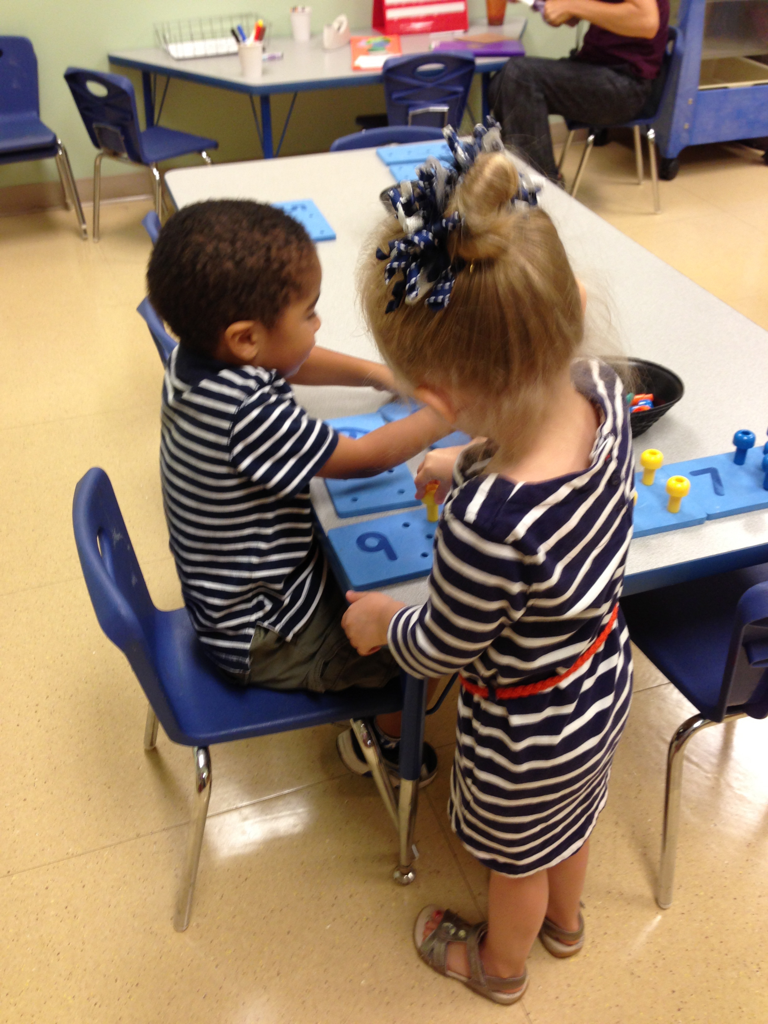 Nolin’s class this year is made up of 10 kids with two sets of twins. The twins are really the book ends as one set just turned 3 the week before school started and the other set I believe are turning 4 this week. There is a big difference in development at that age, so I can’t imagine actually trying to teach them.