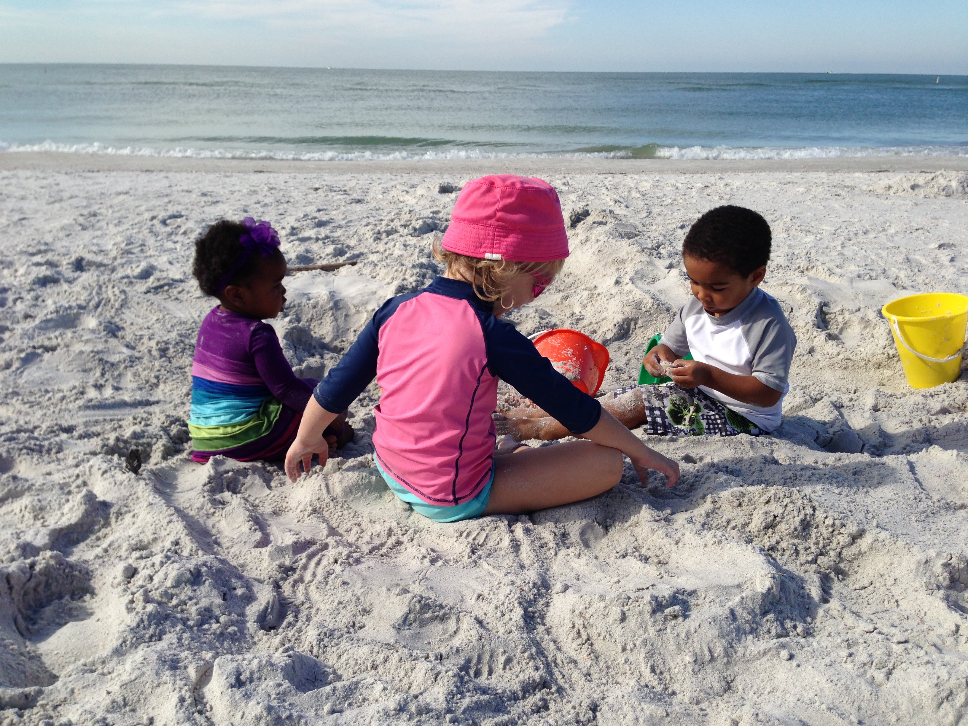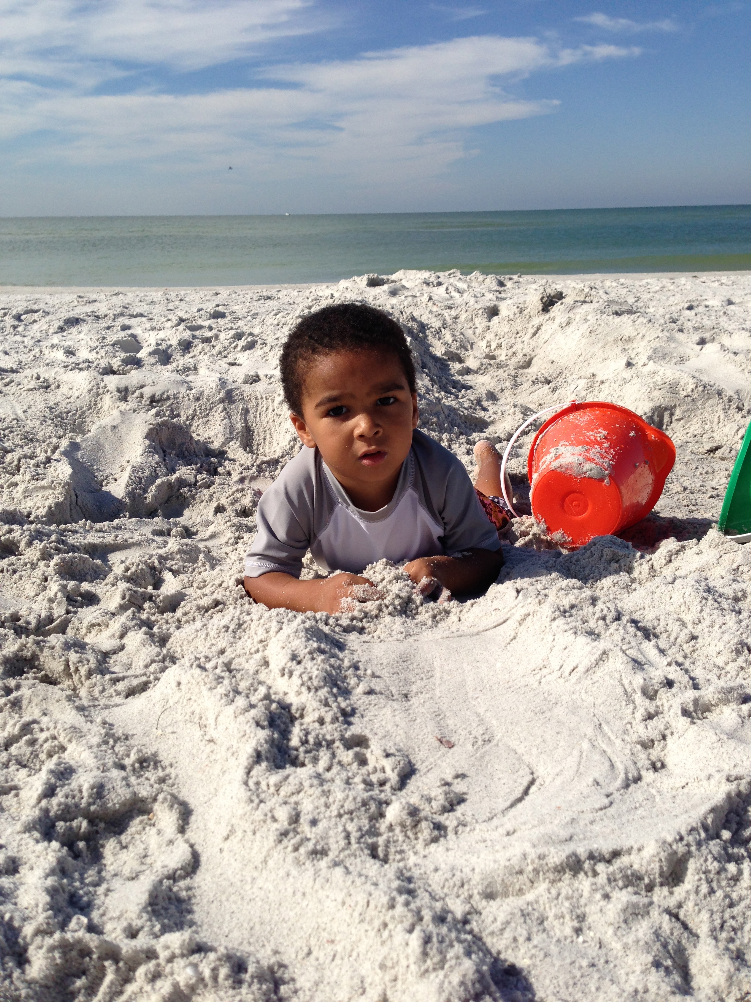 Now that Grace was asleep the kids built sand castles and played at the foot of the ocean. We may or may not have told them that there was a shark a few feet out in the ocean that would get them if they went in past their knees…just a slight exaggeration.