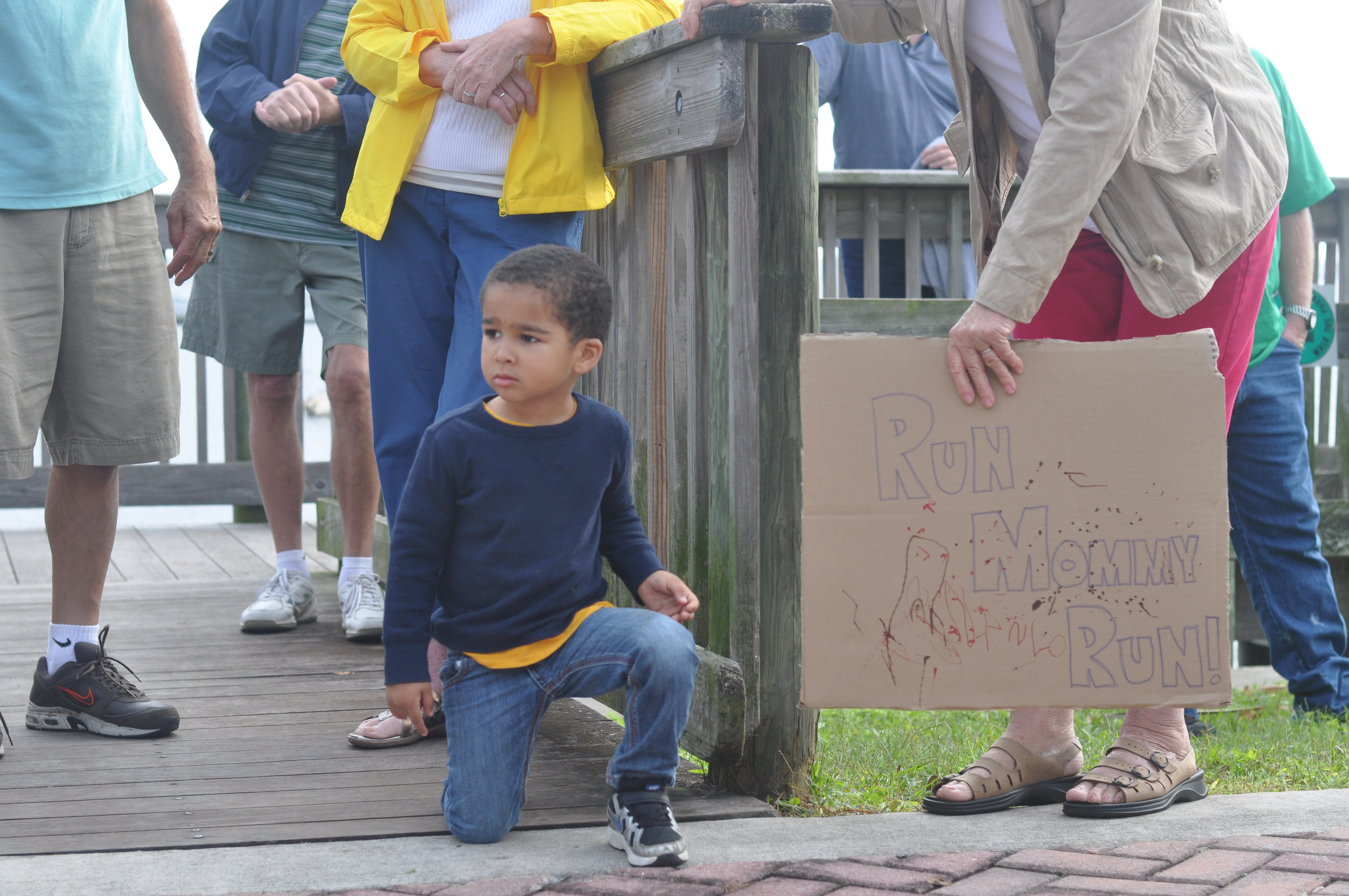 Once we got to the race, Nolin and Grace were very interested for the first 10 minutes. The only problem…we had missed Jenn at the halfway point by about 40 minutes which meant we had a little over an hour before we would see her toward the finish of the race. Oh what to do?
