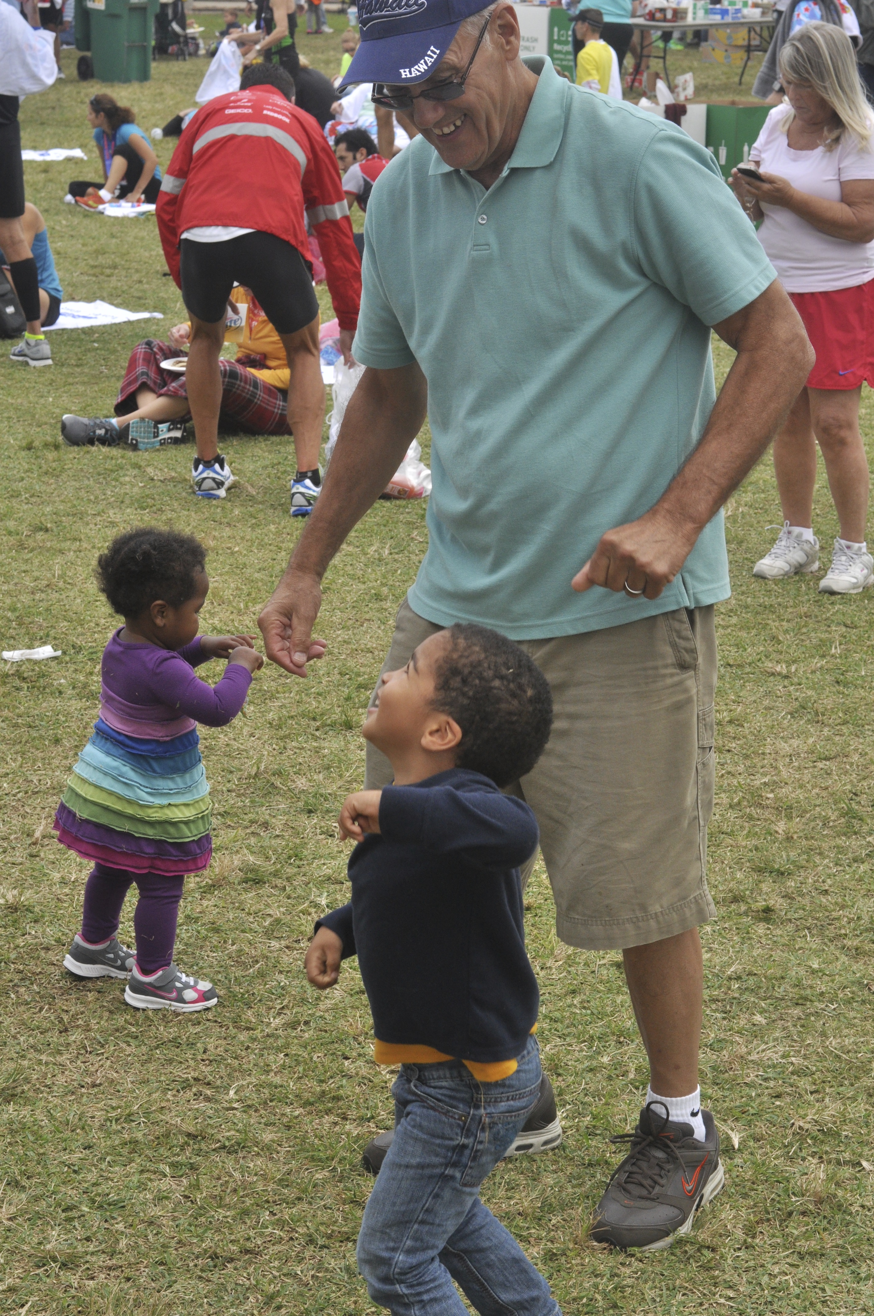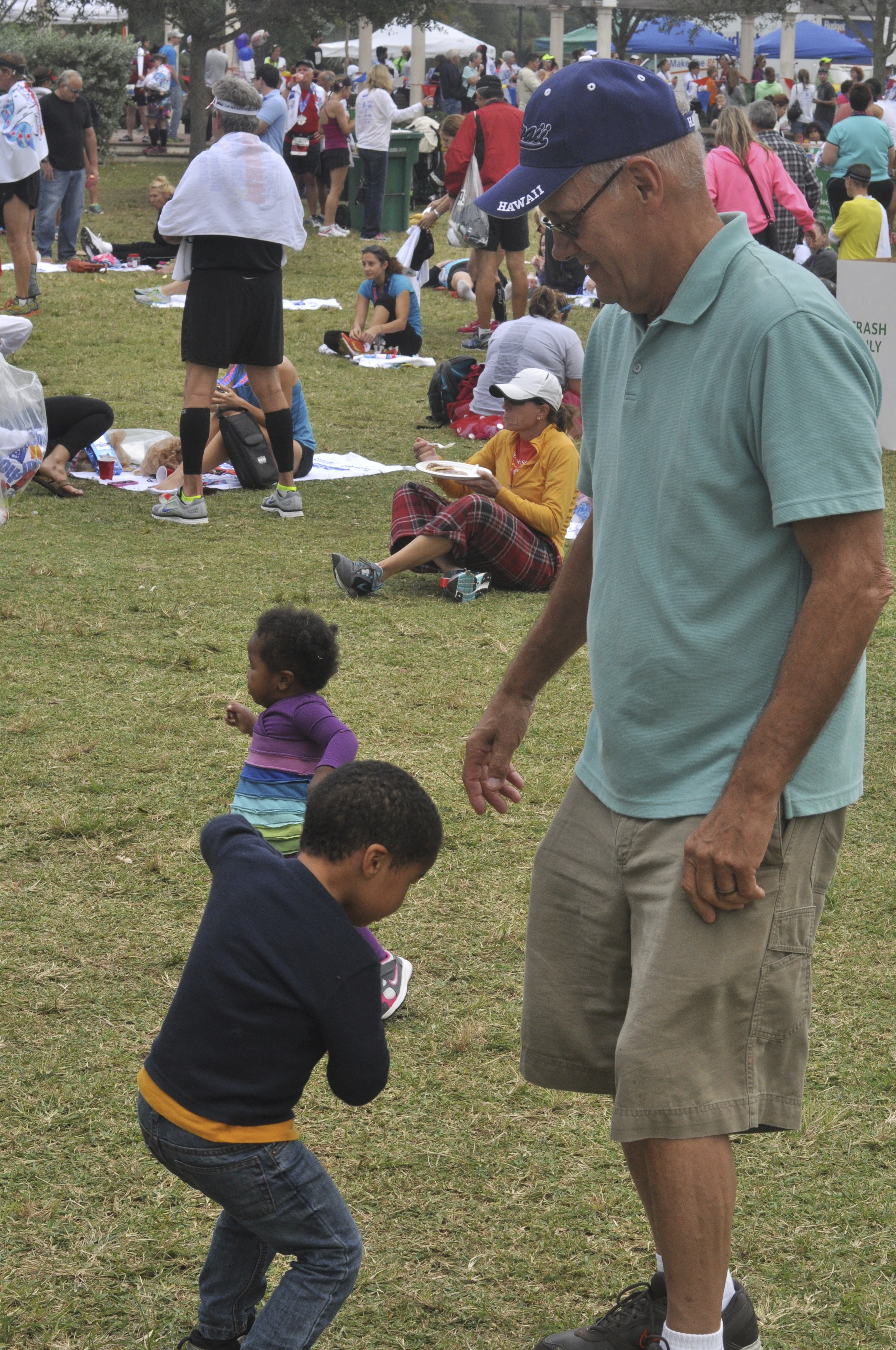 Nolin desperately wanted to be part of the race, so eventually he led Pap-Pap in several foot races along the side of the course. Nolin won every time, but Pap-Pap kept racing him. Grace simply had no desire to sit in a stroller and just wanted to go up to everyone and say hi.