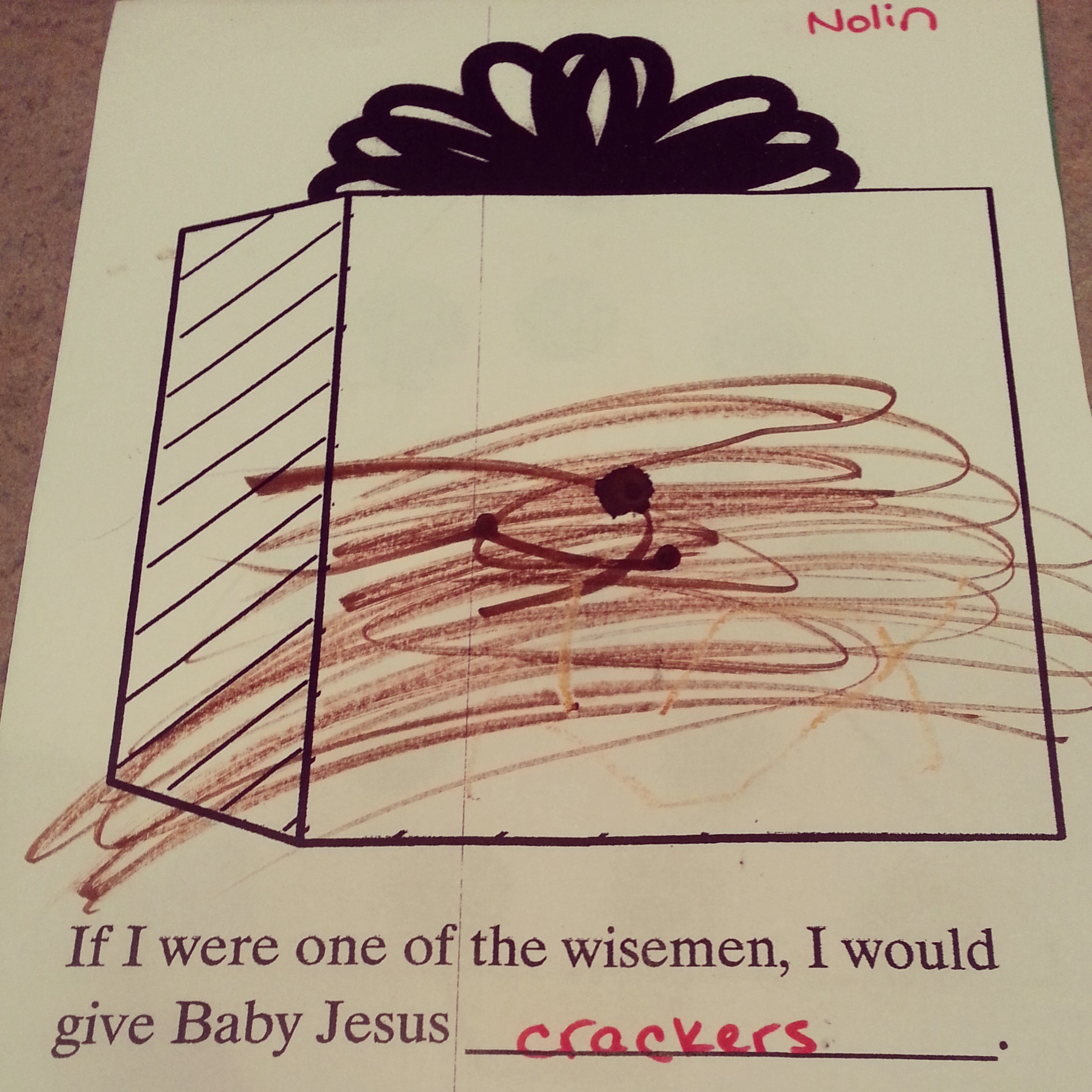 Grace received a blue glittery purse that held a stuffed cat which she proudly placed on her arm and walked around like a little diva. That night Nolin decided that he really liked the cat and wanted it to sleep in his room. Not wanting Nolin to monopolize all of Grace’s toys, I told him that Santa gave the kitty cat to Grace, so it should probably sleep in Grace’s room for the first night.