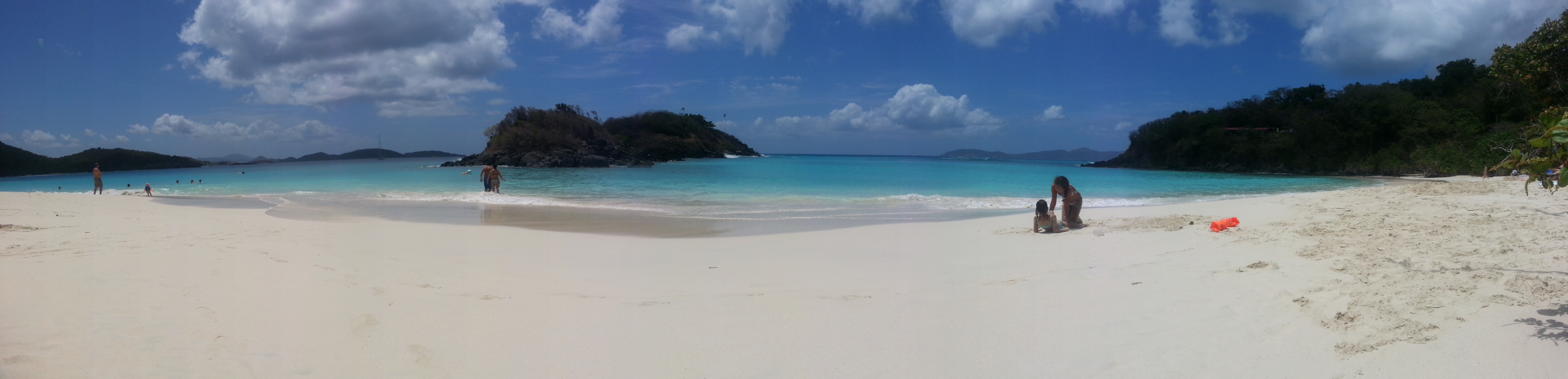 On the ferry, we met a local (from Alaska) and a very cool family who were regulars to St. John. Once we arrived, we picked up our rental car and made the short 13 mile drive (or 45 minutes) to the other side of the island and arrived in paradise.