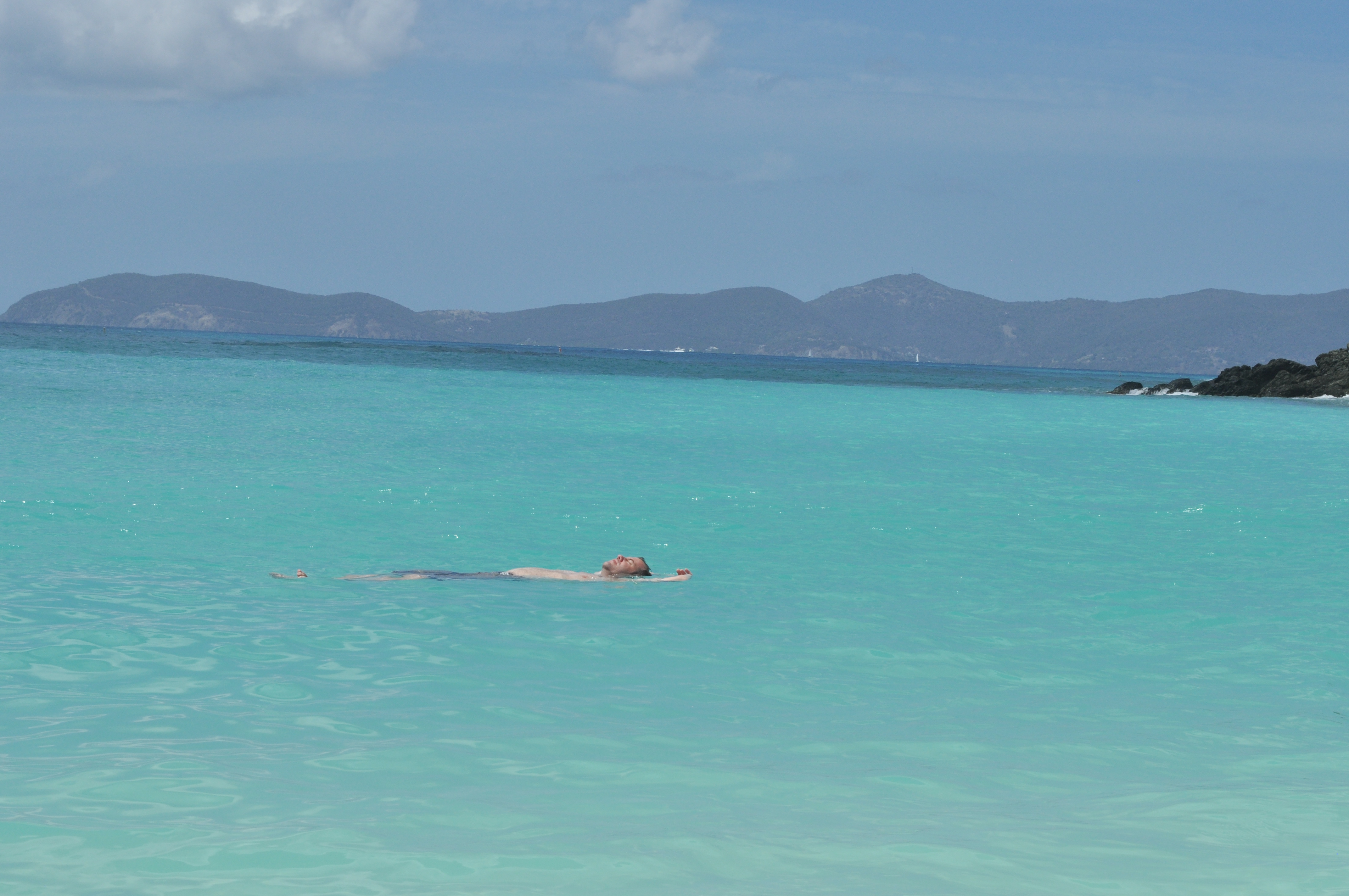 So we swam out for one drink figuring it would be a tourist trap. It was occupied by locals and it was also like heaven. We decided to extend our visit, but one of us needed to swim back to get more money, so as I was halfway between the boat and the beach, I hear Jenn yell from the boat they say there is deli in Coral Bay.