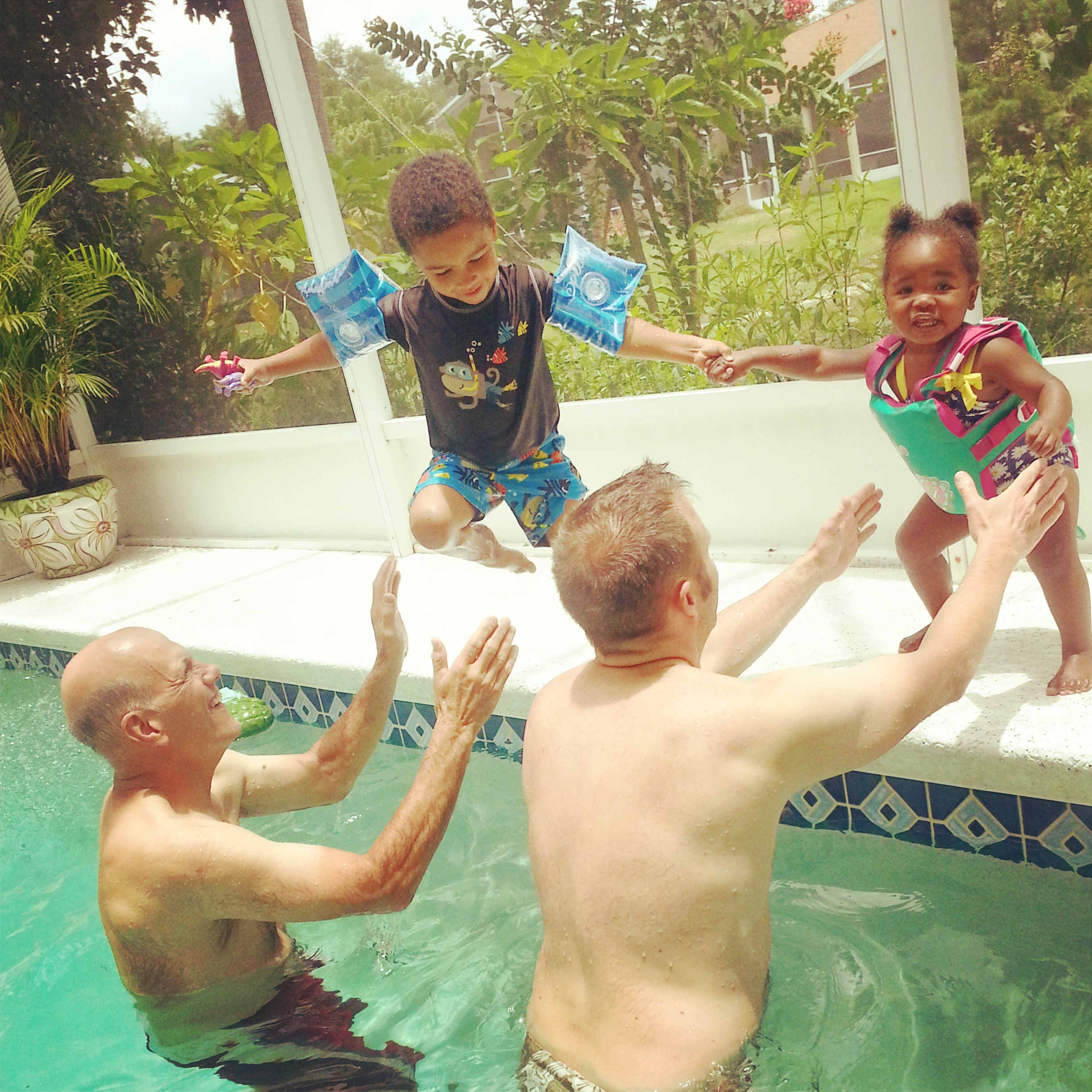 I did have a chance to go for a run and get the lawn mowed and then spend the rest of the day playing in the pool, grilling out and spending time with my family. As I walked in the door from my run I was greeted by a Happy Father’s Day message on the sidewalk. I was tired, sweaty and laying on the floor, when Nolin approached me with his hands behind his back, eyes wide, and a huge smile…