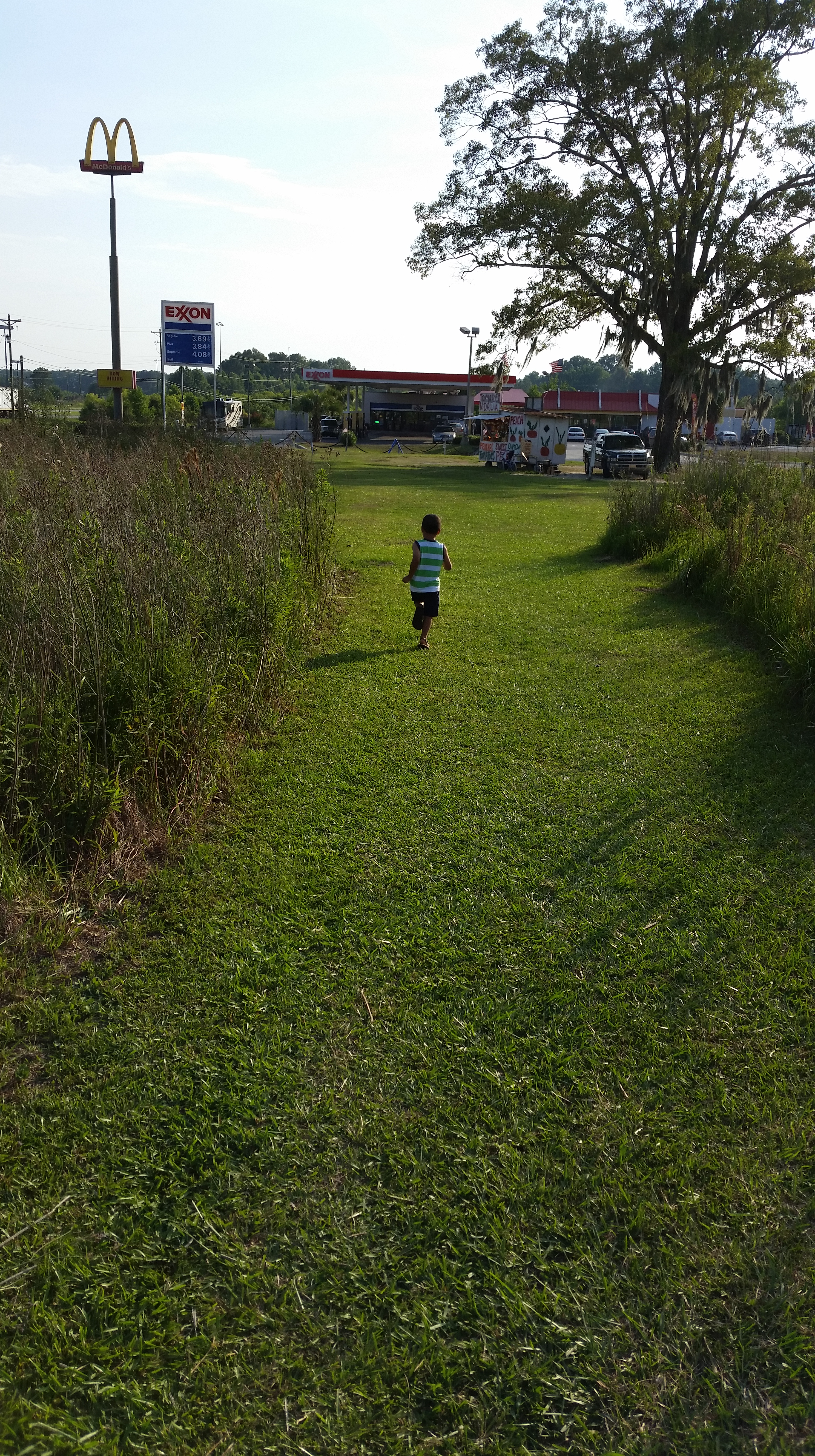 We were making good time, when Nolin announced that he had to go to the bathroom. Jenn was prepared. Like a road trip veteran, she pulled out an empty Gatorade bottle and all was right with the world. Our new family motto: When nature calls…we keep moving.