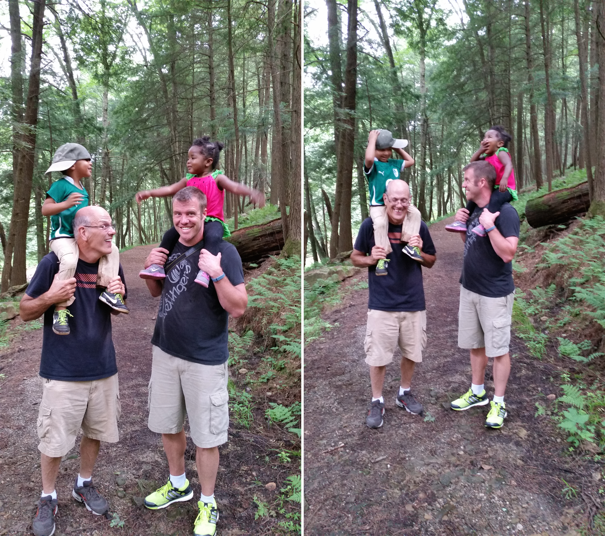 The rain cleared and we headed back to our hike. we made it to the waterfalls and then were heading to the fire tower. Nolin picked up a stick and shortly after I heard a loud scream. I turn around to see Pap Paps eyes wide and Nolin on the ground. He had fallen with the stick and got a pretty big splinter. As I was trying to remove the splinter he pulled his hand and the piece sticking out broke off. This caused louder blood curdling screams that were echoing through the woods.