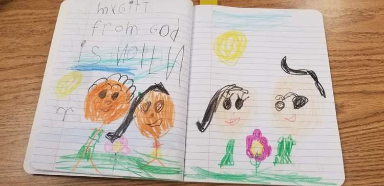 For Grace, she was asked what her greatest gift from God was and to draw a picture. In Grace’s picture she said:
